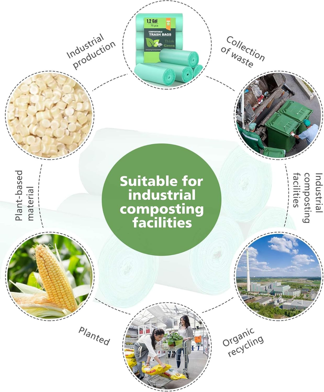 Reduce White Pollution: Our 1.2 gallon trash bags are made of Plastarch material(PSM), which is based on natural renewable plant starch extract. Not suitable for backyard composting, but degradable under industrial conditions without causing damage to the environment.