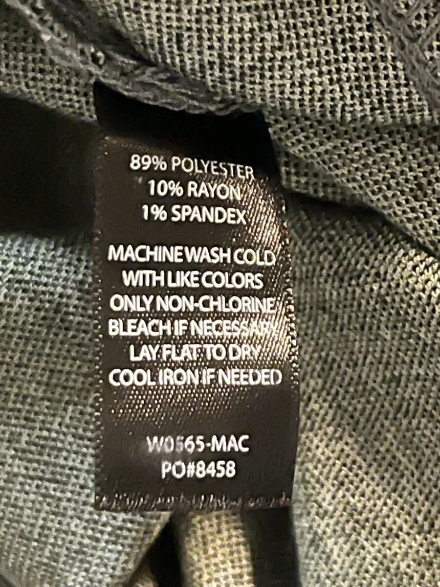 Fabric: 89% Polyester, 10% Rayon, 1% Spandex