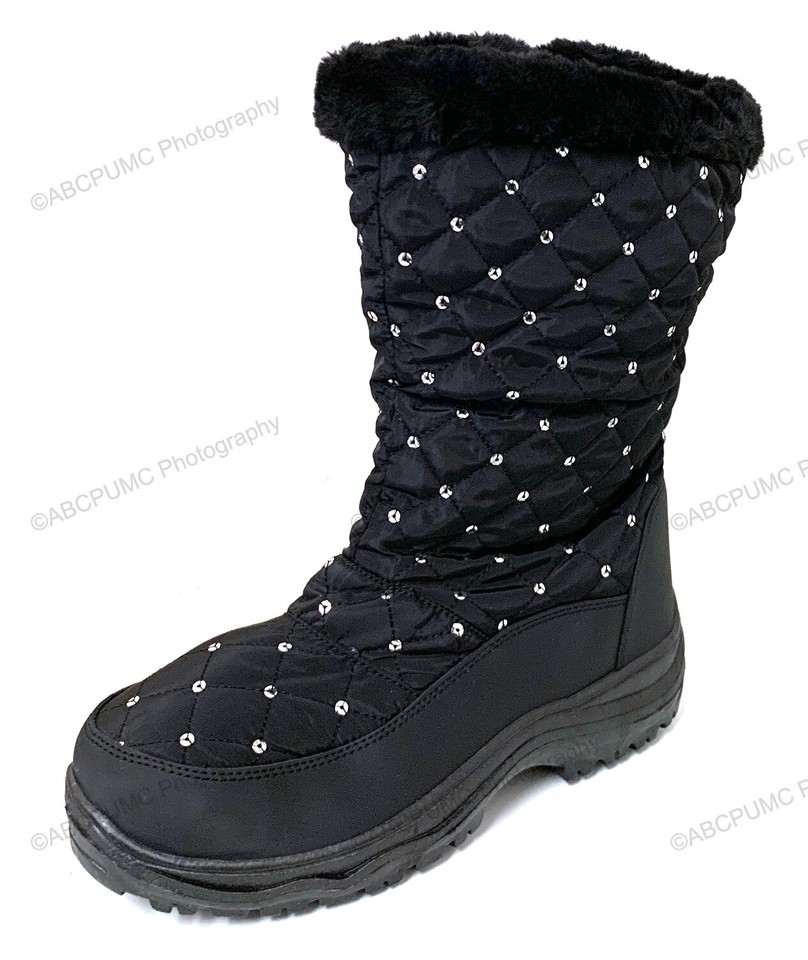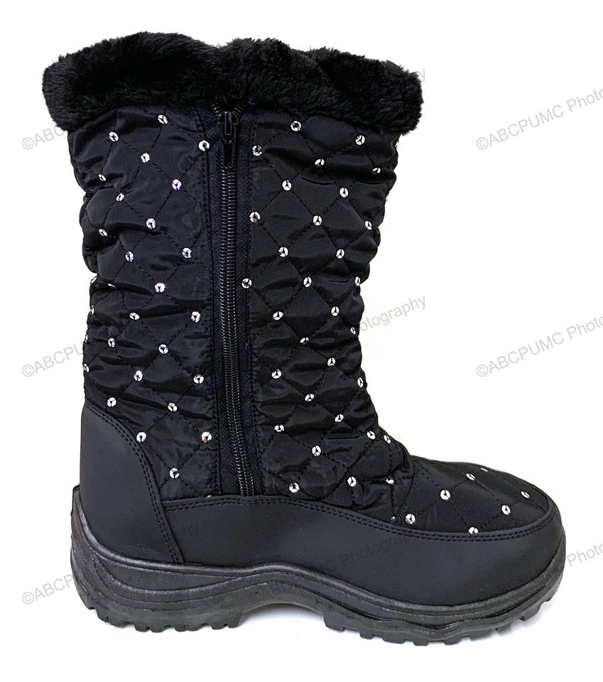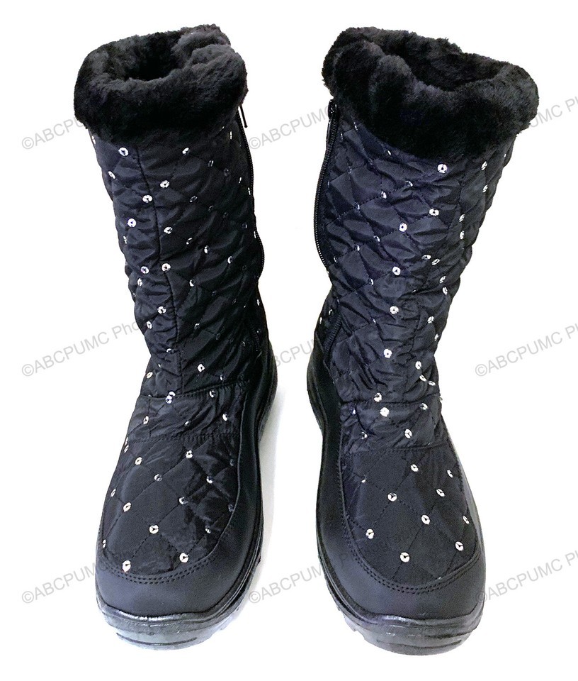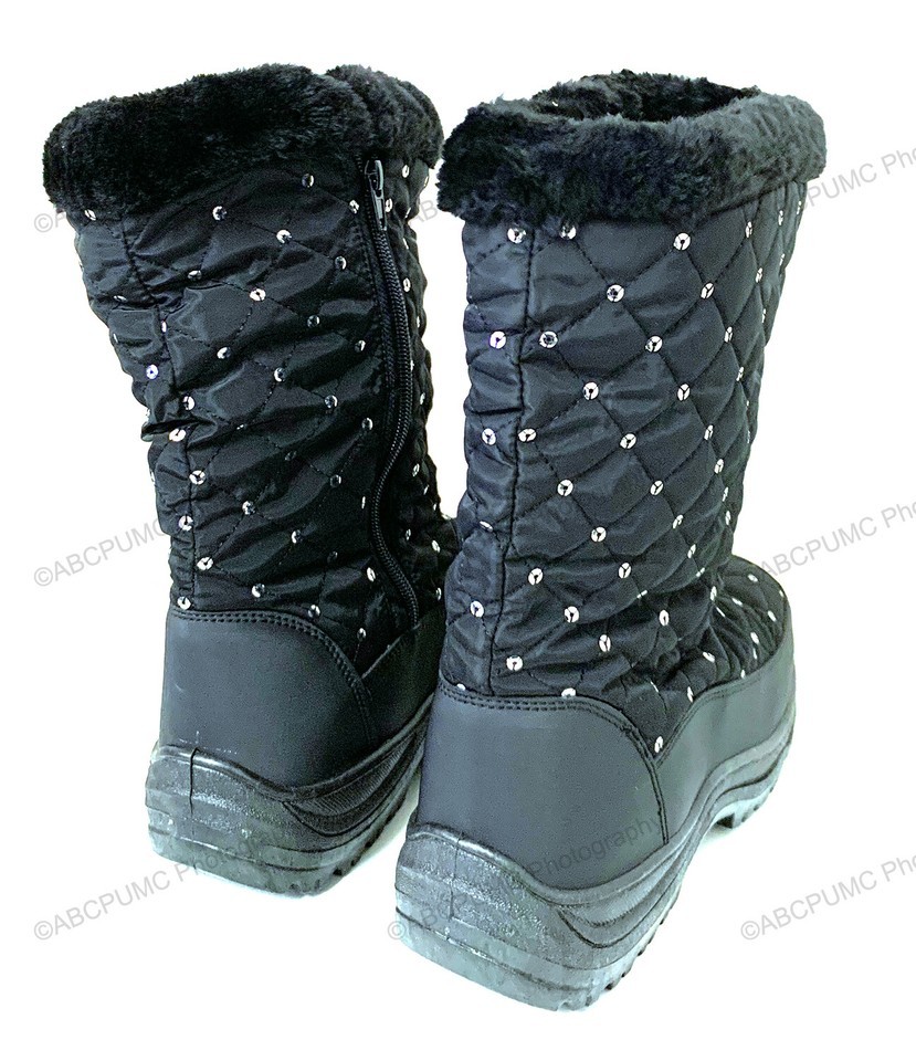 New Women's Winter Boots Fur Lined Jewel Fashion Warm Zipper Snow Shoes, Sizes