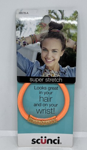 Scunci 1 Piece Super Stretch Hair/Wrist Elastic Orange With Gold Embellishment.