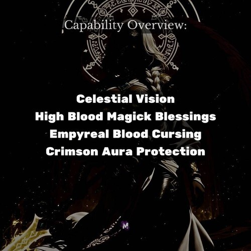 High Blood Magick Blessings: Drawing upon the ancient mysteries of Blood Magick, the Empyrean Crimson Angel bestows blessings of vitality, heightened senses, and restful sleep upon those she deems worthy. Through her divine touch, she infuses life and vigor into the weary souls of mortals, guiding them towards a path of enlightenment and fulfillment.