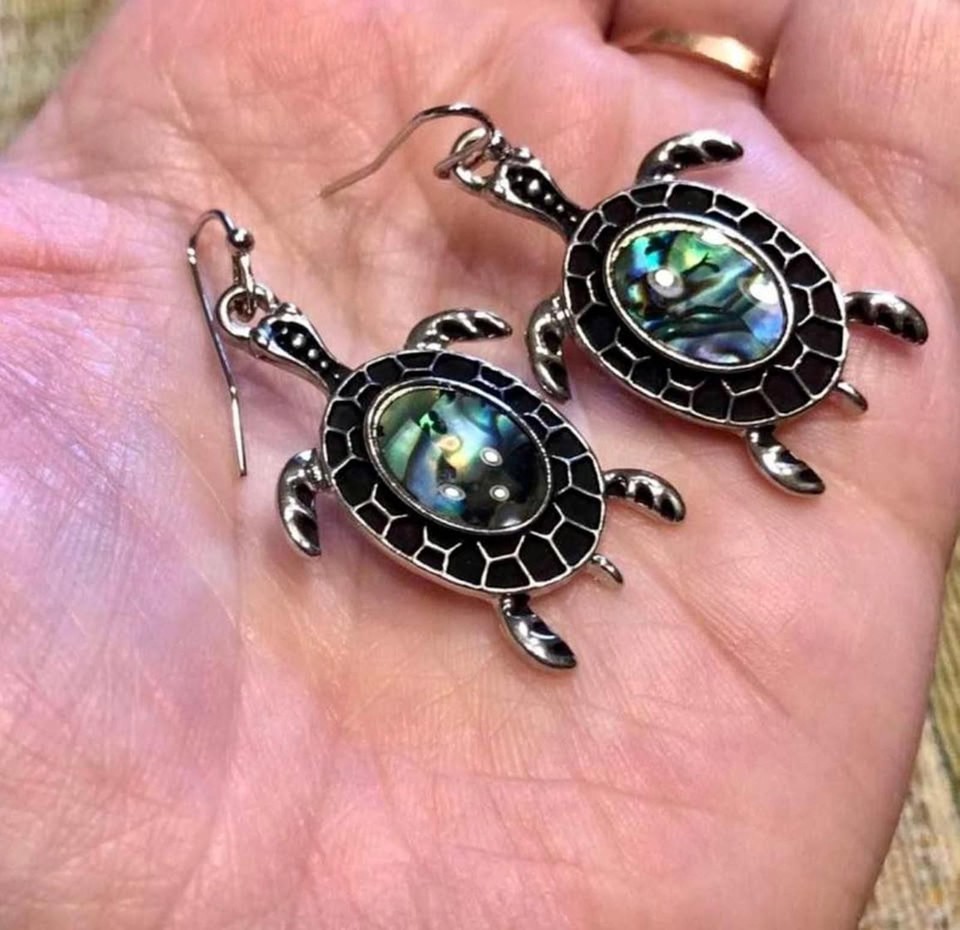 New Absolutely Beautiful Abalone Sea Turtles Multi Colorful Earrings
