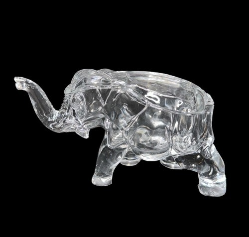 Vintage Tiara Indiana Clear Glass Elephant Lidded Covered Candy Dish Trinket Box