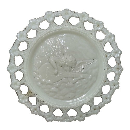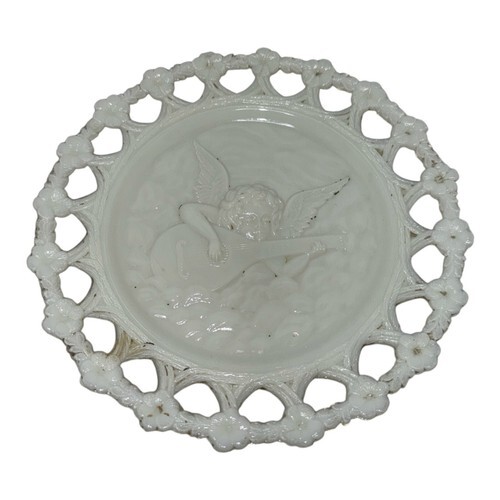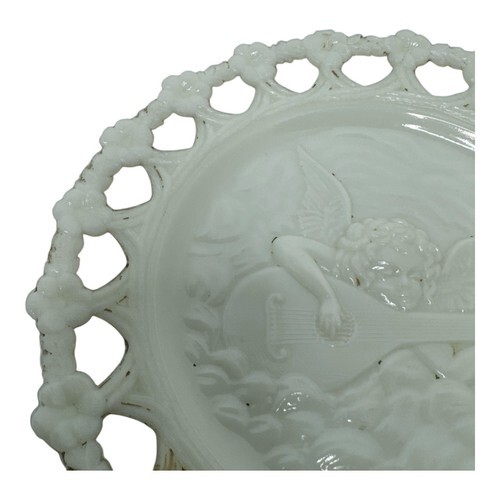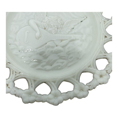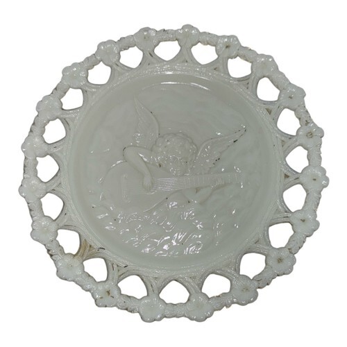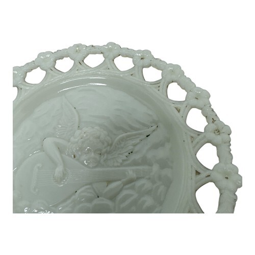 Vintage Westmoreland Milk Glass Decorative Plate Cherub W/ Mandolin Floral Angel