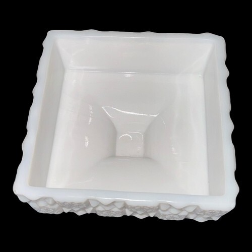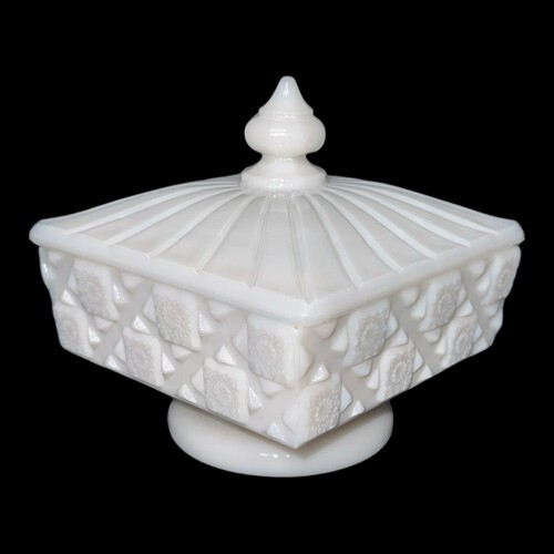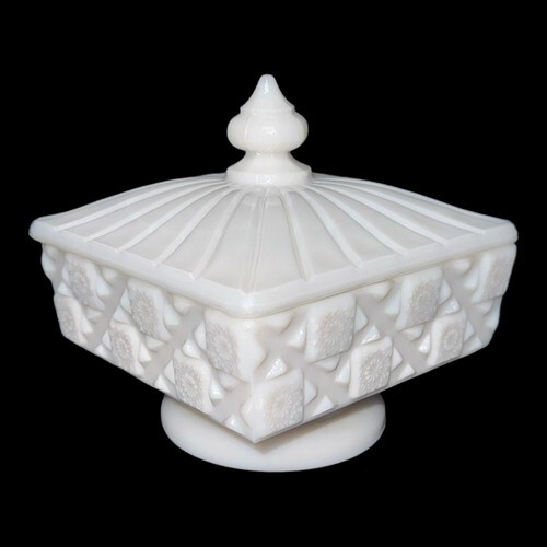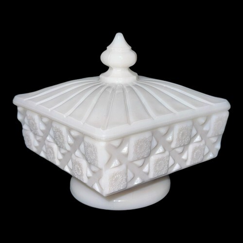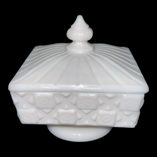 Vintage Westmoreland White Milk Glass Old Quilt Footed Candy Dish w/ Lid