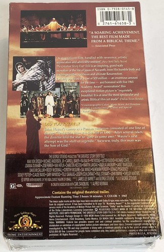 The Greatest Story Ever Told 1965 Max Von Sydney Dorothy McGuire - VHS Video NEW.