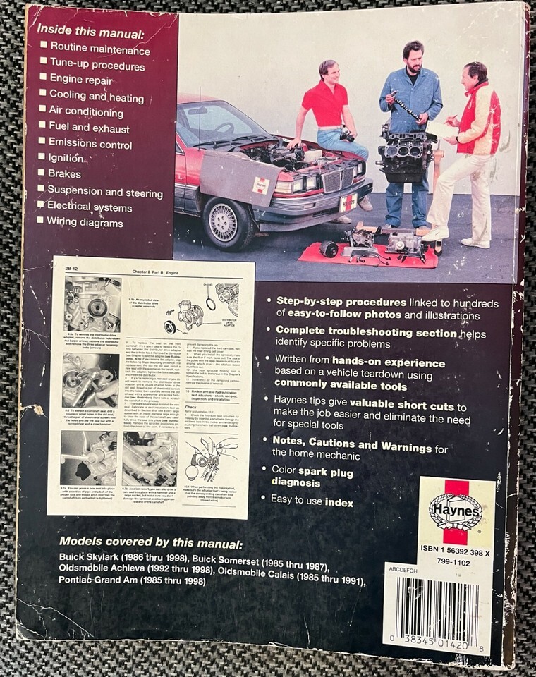 Haynes Repair Manual 38025 GM Skylark Somerset GrandAm Achieva Calais 85 98