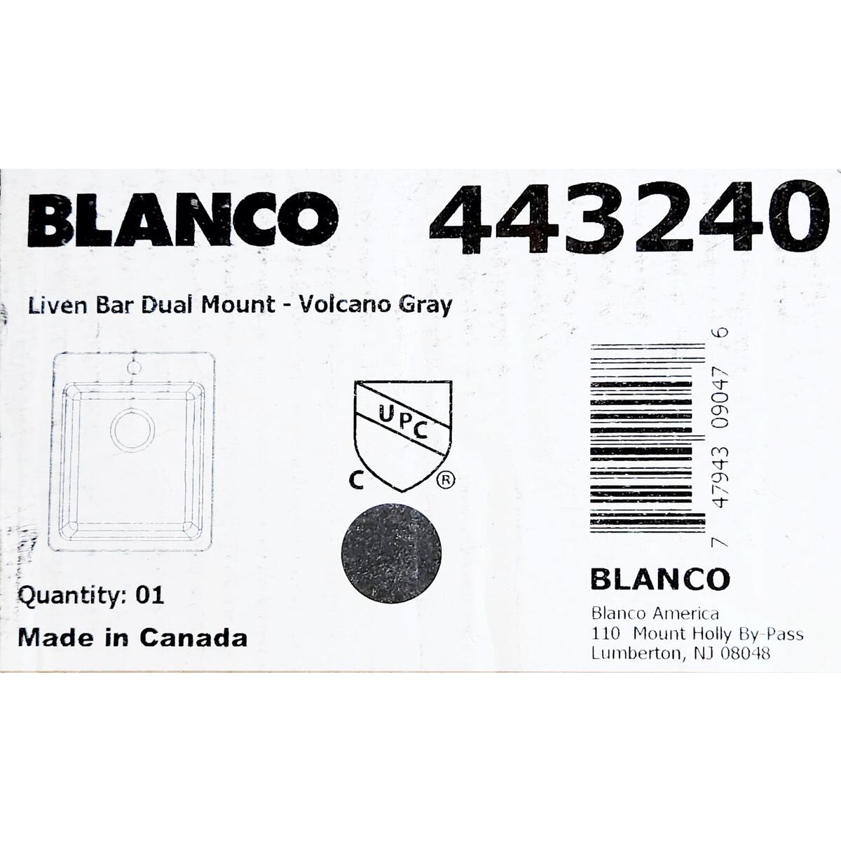 Blanco 443240 Liven Silgranit 6-3/4" Dual Mount Bar Sink - Volcano Gray