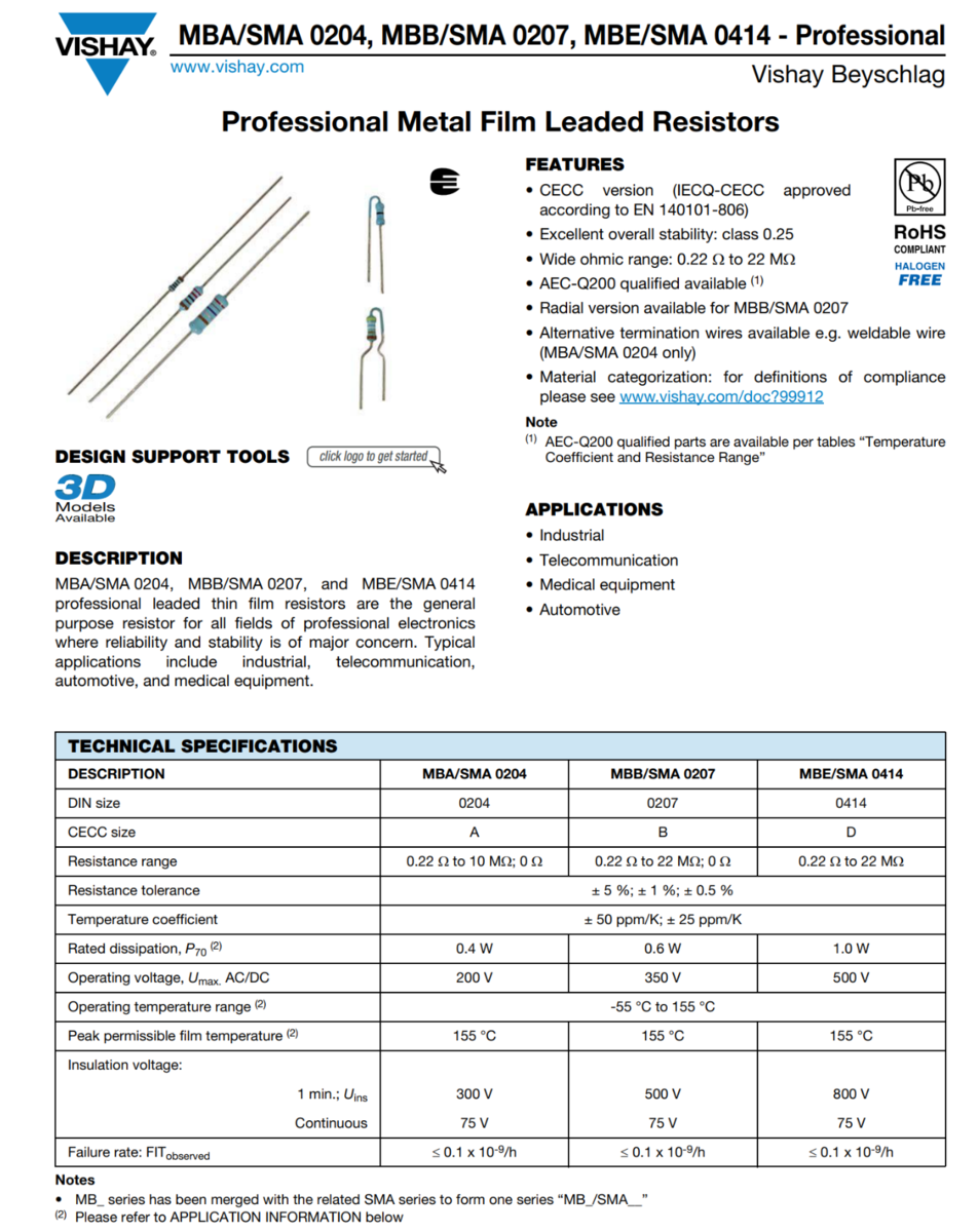 MBA/SMA 0204-50 1% CT 392R/MBA02040C3920FCT00/MBA02040C3920F |
