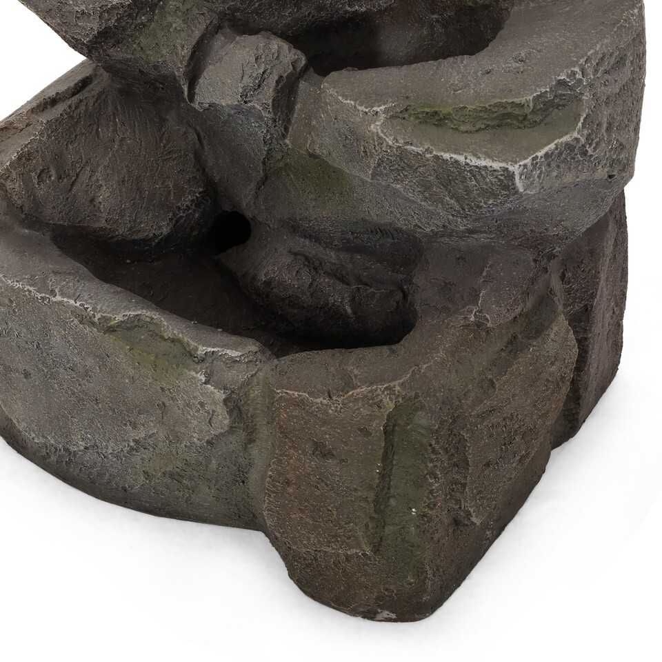 WATERFALL FLOW: With a gentle and relaxing water flow, this garden fountain uses an interior pump to bring a peaceful atmosphere to your outdoor space. This fountain features a stacked rock design with four tiers that create a beautiful waterfall effect.