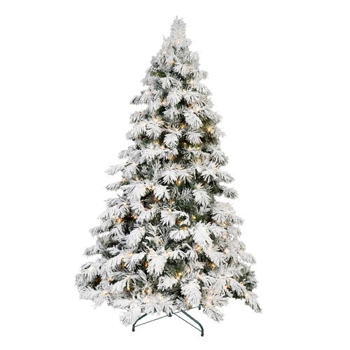 8ft Flocked Scarecrow Christmas Tree w/ Warm White LED Lights & Snowy Tips