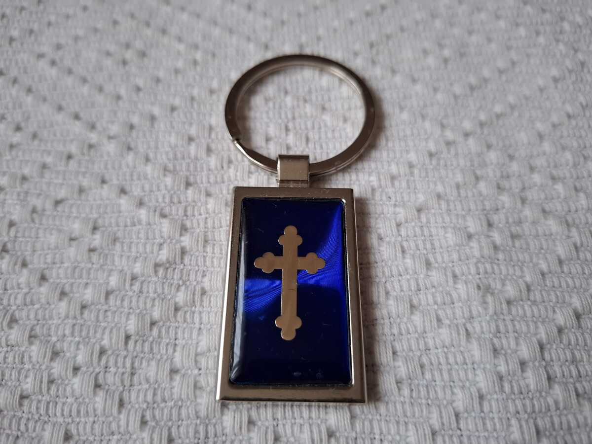 Serbian Orthodox Metal Pendant Key Chain Key Ring Blue Color