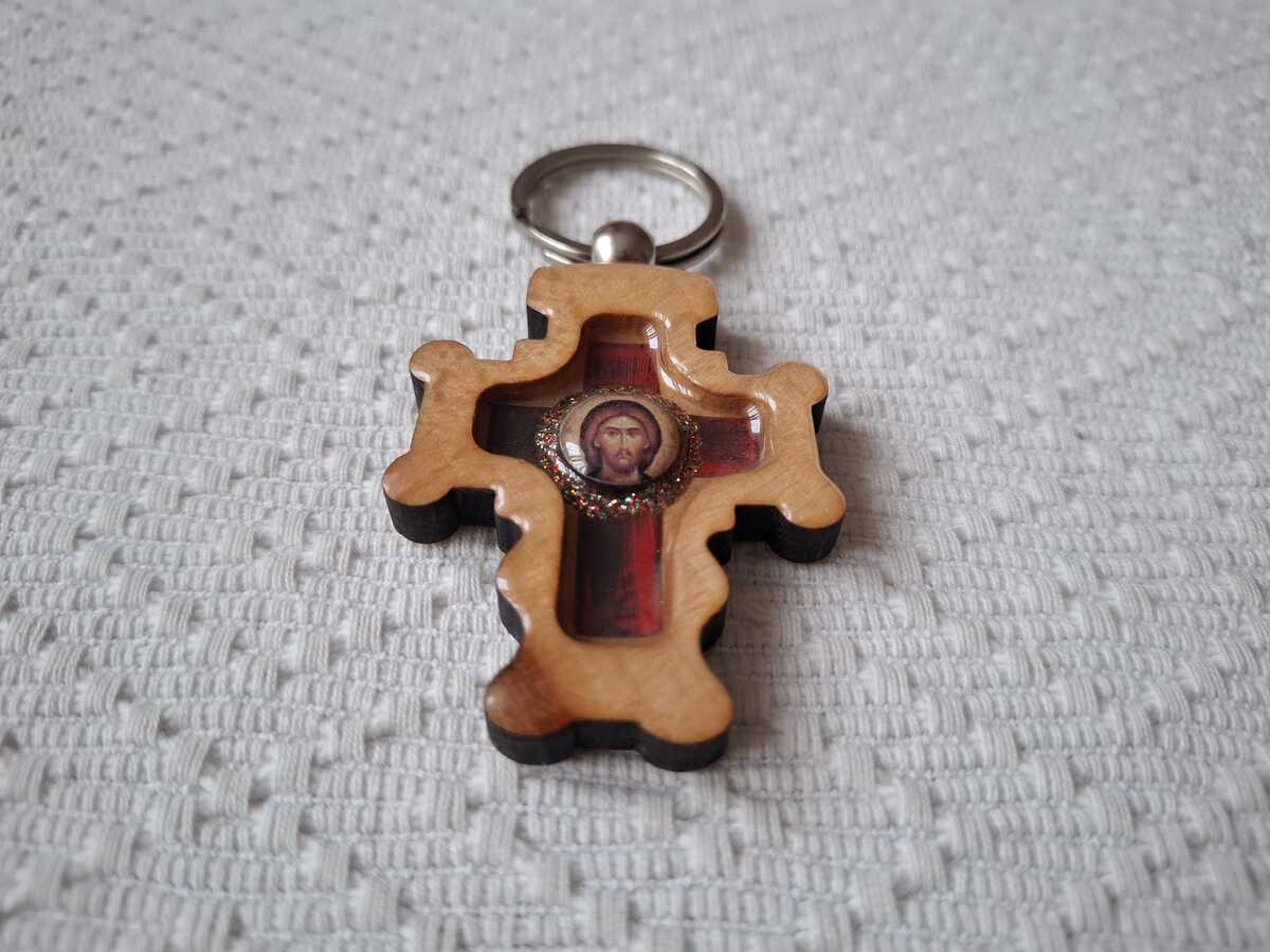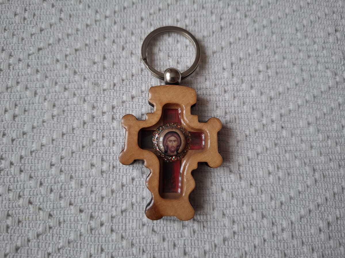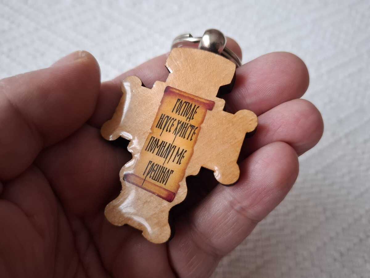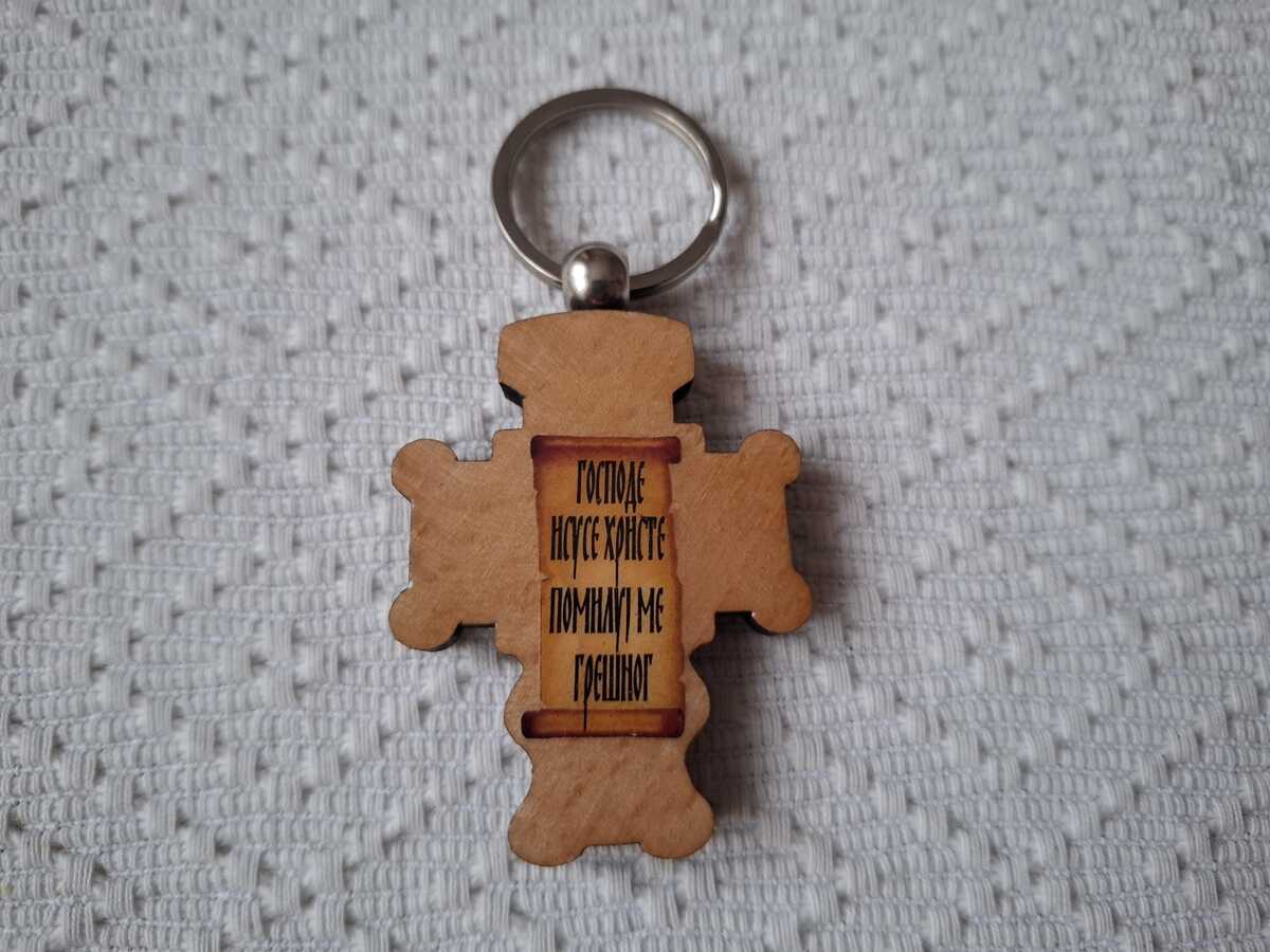 Serbian Christian Orthodox Wooden cross Pendant Key Chain Key Ring