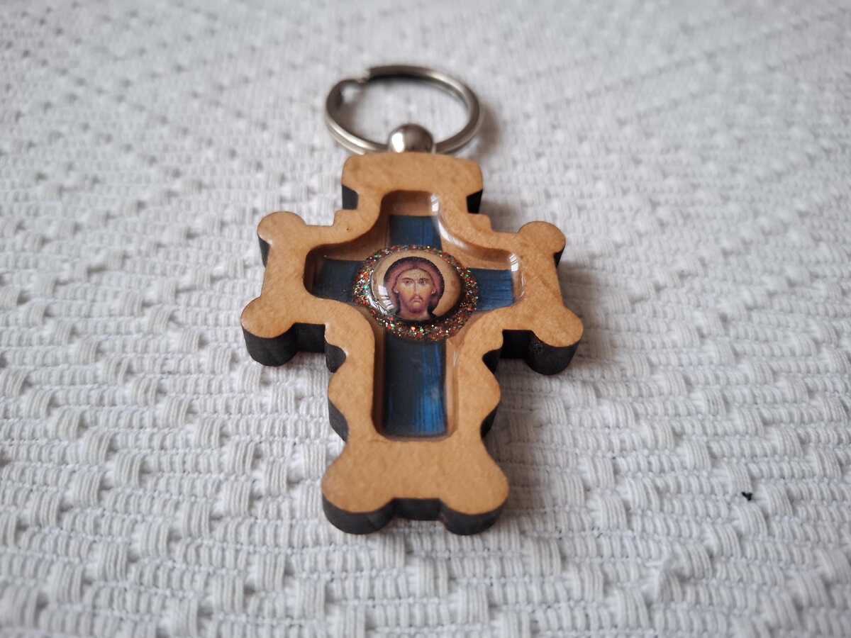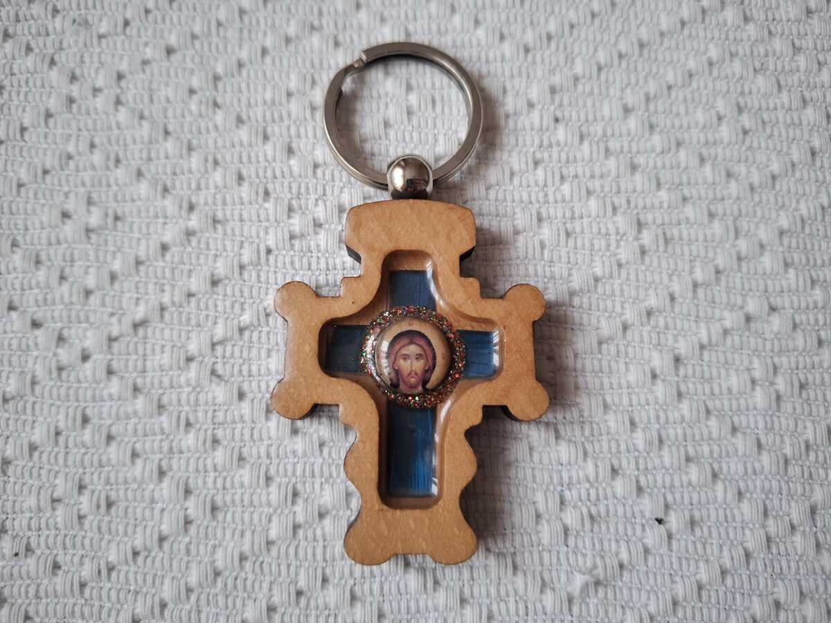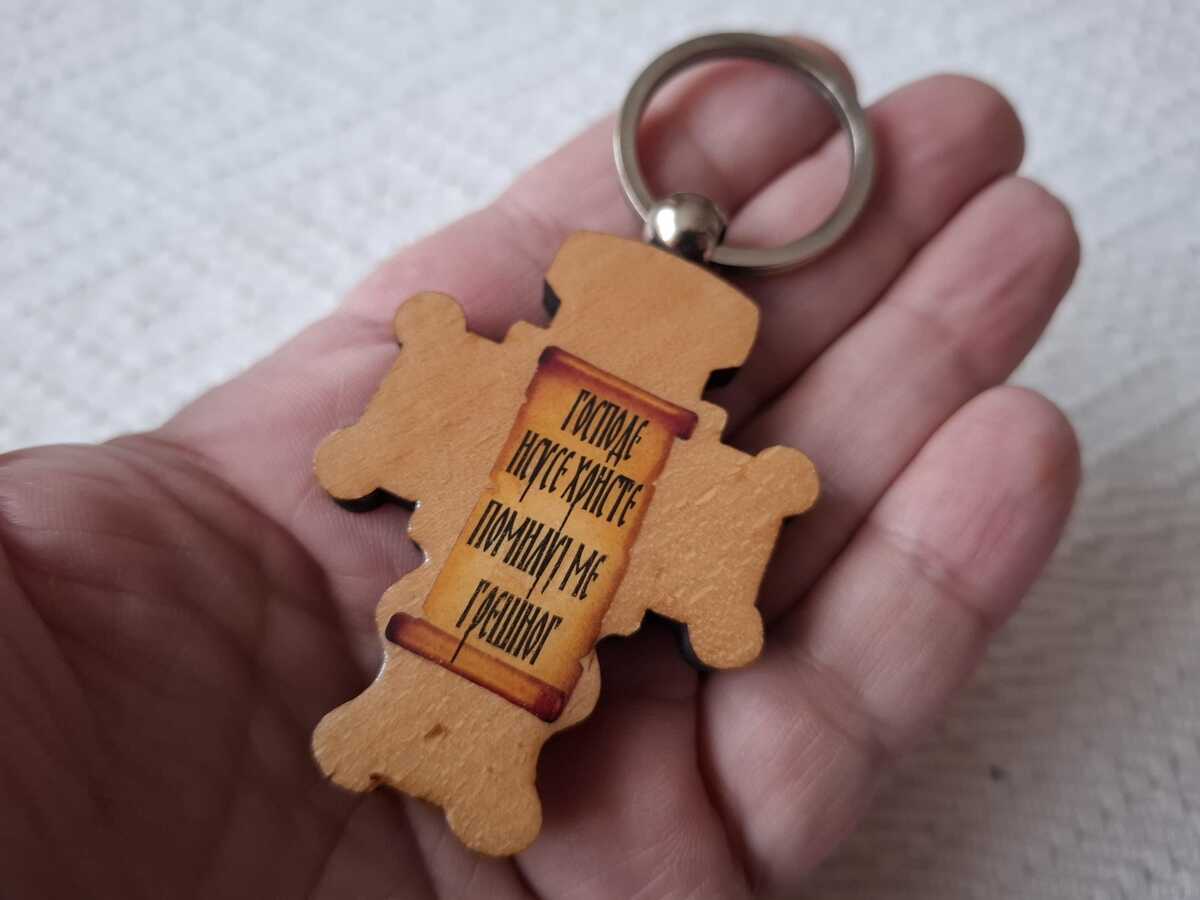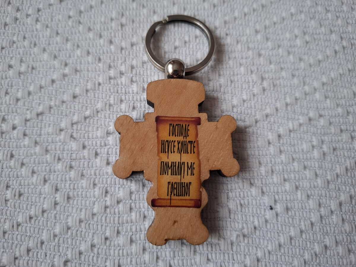 Serbian Christian Orthodox Wooden cross Pendant Key Chain Key Ring