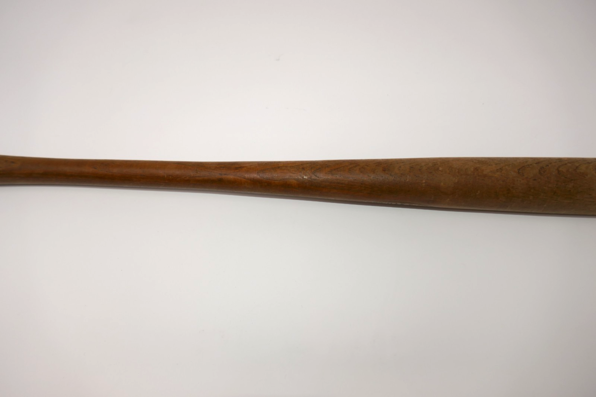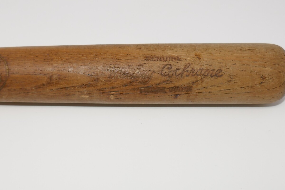 The Louisville Slugger Hillerich Bradsby Mickey Cochrane Baseball bat is a vintage sports memorabilia piece featuring the iconic Detroit Tigers player. This measures approx. 16" long with some wear. Made in the United States, this original reproduction bat pays homage to Cochrane's legacy in the sport. With its historical significance and unique design, this collectible item is a must-have for fans of baseball and sports memorabilia enthusiasts alike.