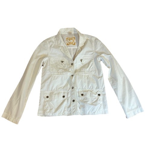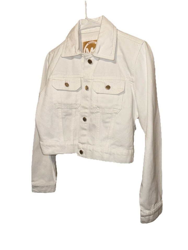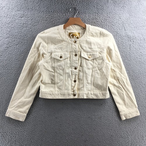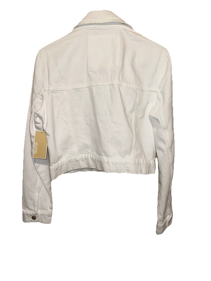 Michael Kors Cropped Denim Jacket White Cotton Pockets SZ M NEW
