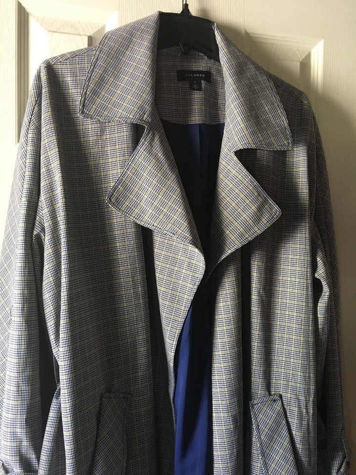 Halogen Plaid-Print Lightweight Trench COAT NEW SZ XXL