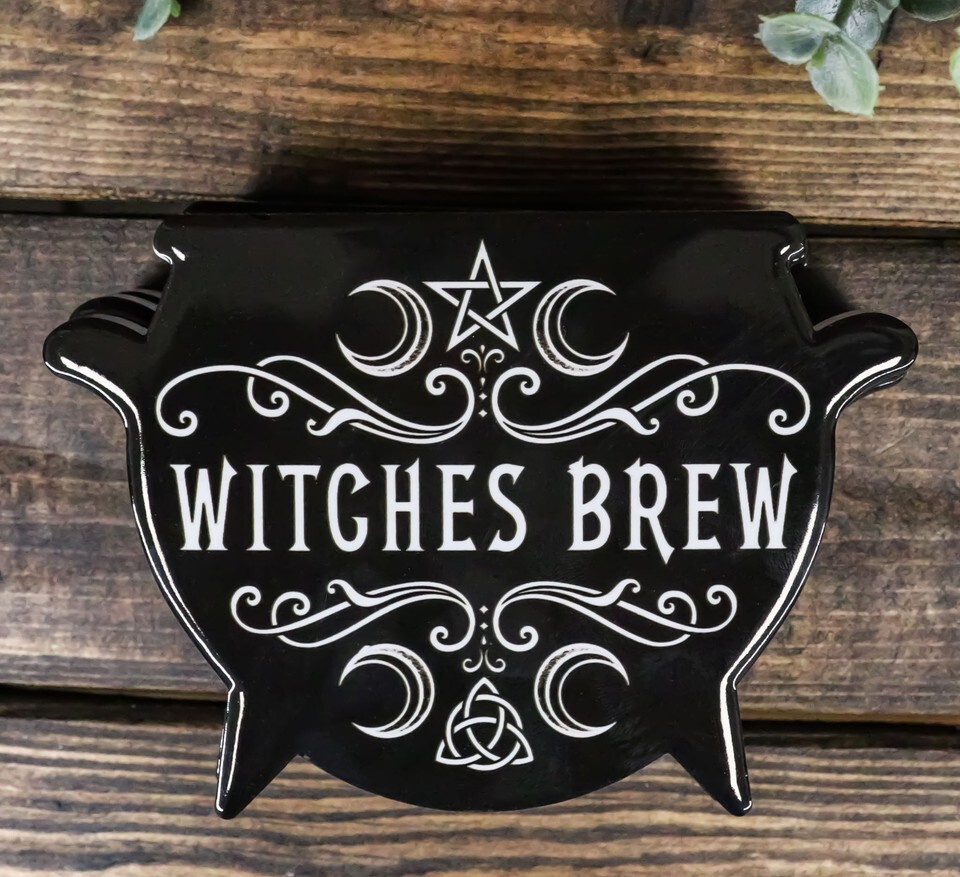 Set Of 4 Wicca Occult Witches Brew Pentagram Cauldron Ceramic Cork Coasters