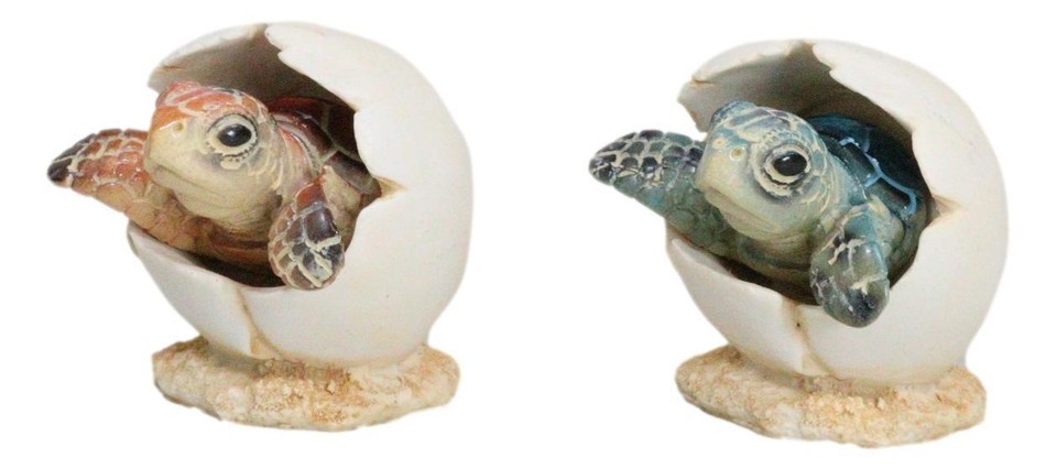 ? These Sea Tutle Hatchlings Breaking Out Of Eggs Figurines are made of designer composite resin, hand painted and polished individually. Color Tone may vary slightly from pictures.