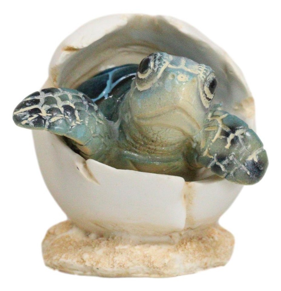 Pack Of 2 Marine Blue And Brown Sea Turtle Hatchlings In Egg Shells Figurines