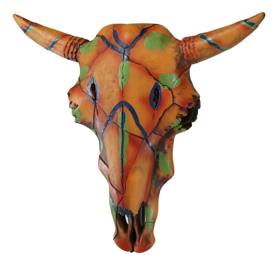 ? This Tribal Steer Skull Wall Decor is made of designer composite resin, hand painted and polished individually. Color Tone may vary slightly from pictures.