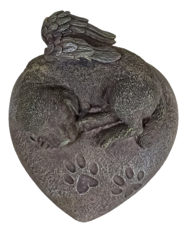 Angelic Labrador Dog Sleeping On Heart Stone Cremation Urn Pet Memorial Statue