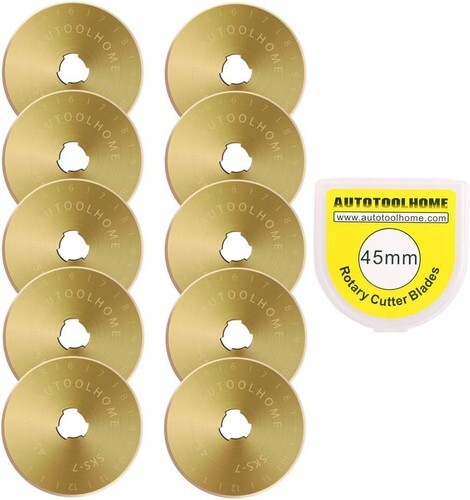 The KAI 5045BL blade is a 45mm rotary cutter blade that is compatible with most 45mm rotary cutters, including those in the KAI rotary cutter collection.