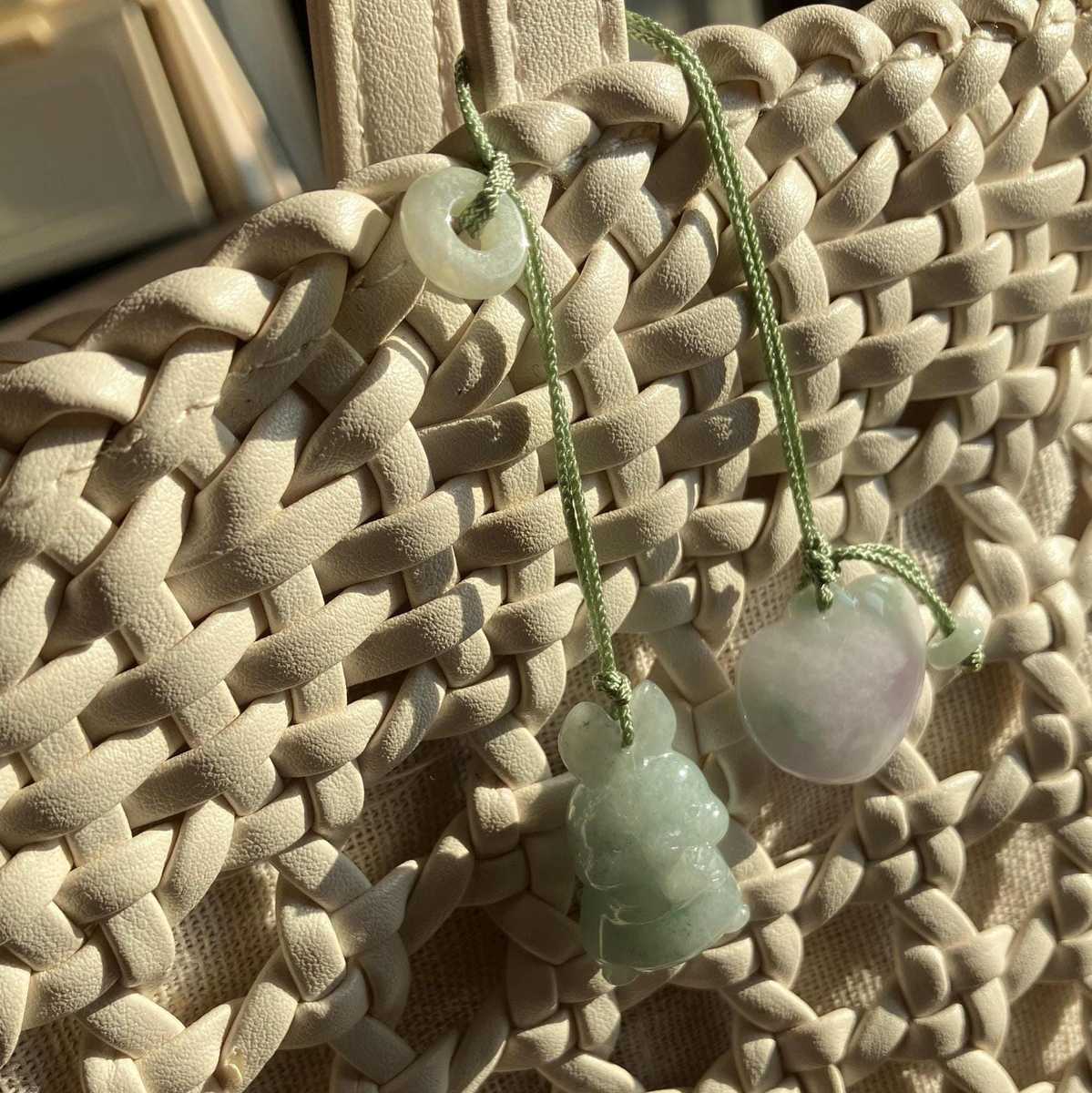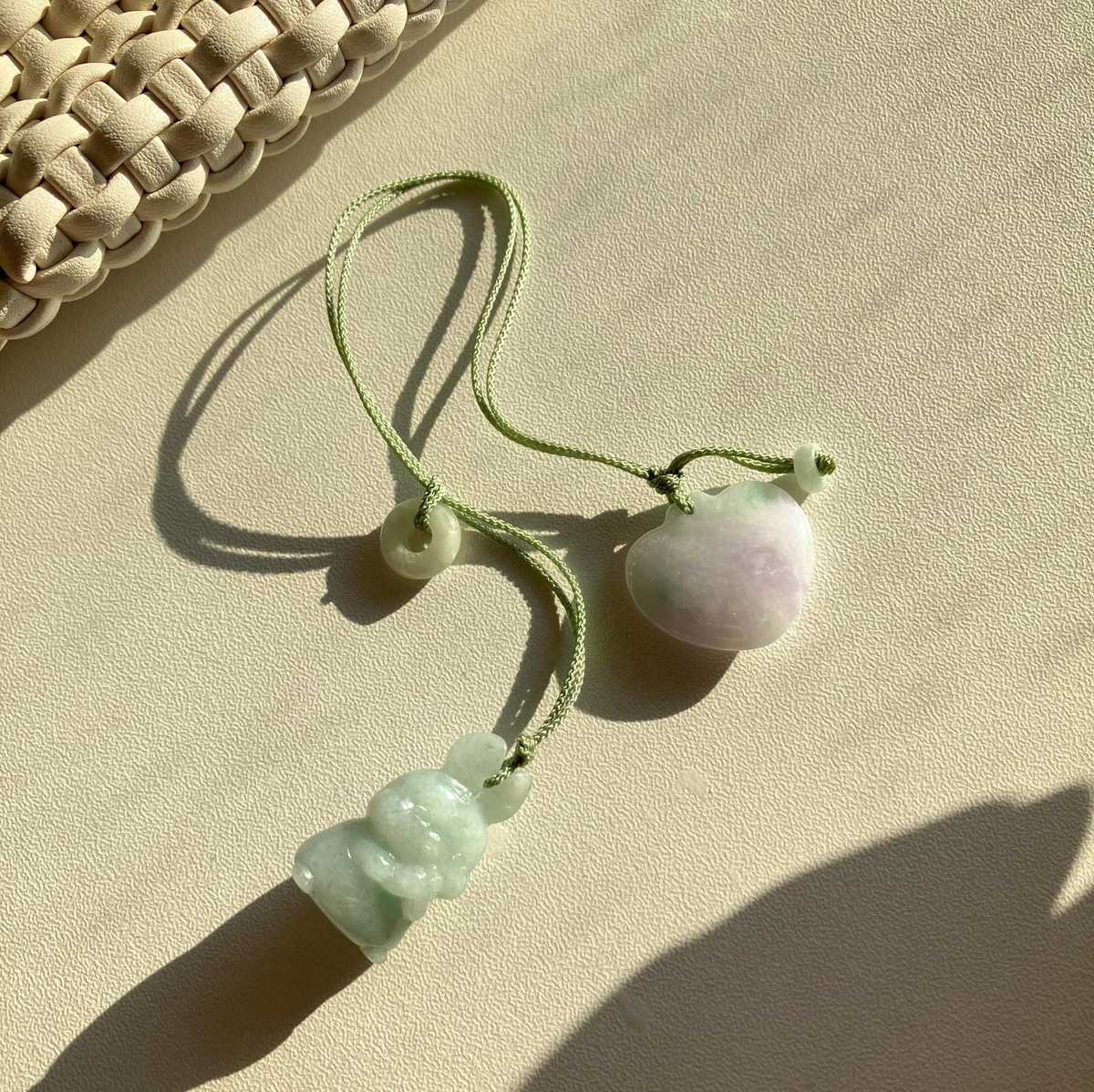 Natural Type A Jade Hadmade Rabbit & Heart Bag Charm