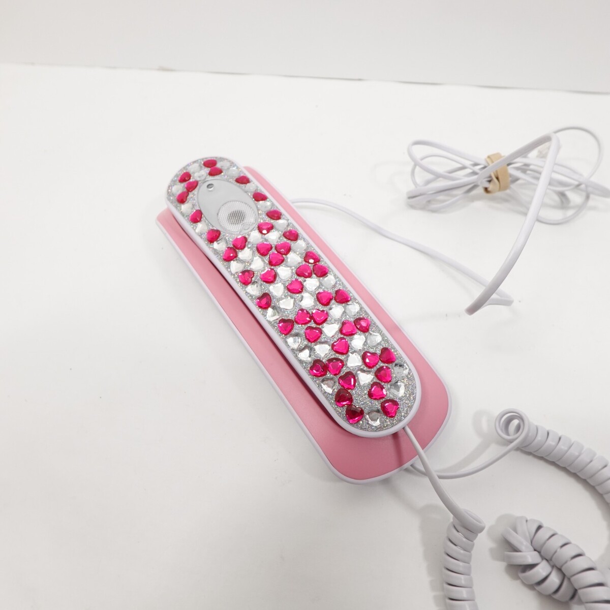 Avon collectible rhinestone Landline phone Jeweled Plastic - Pink and White EXC