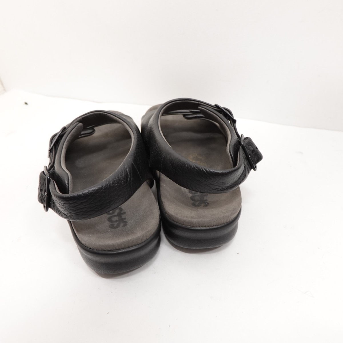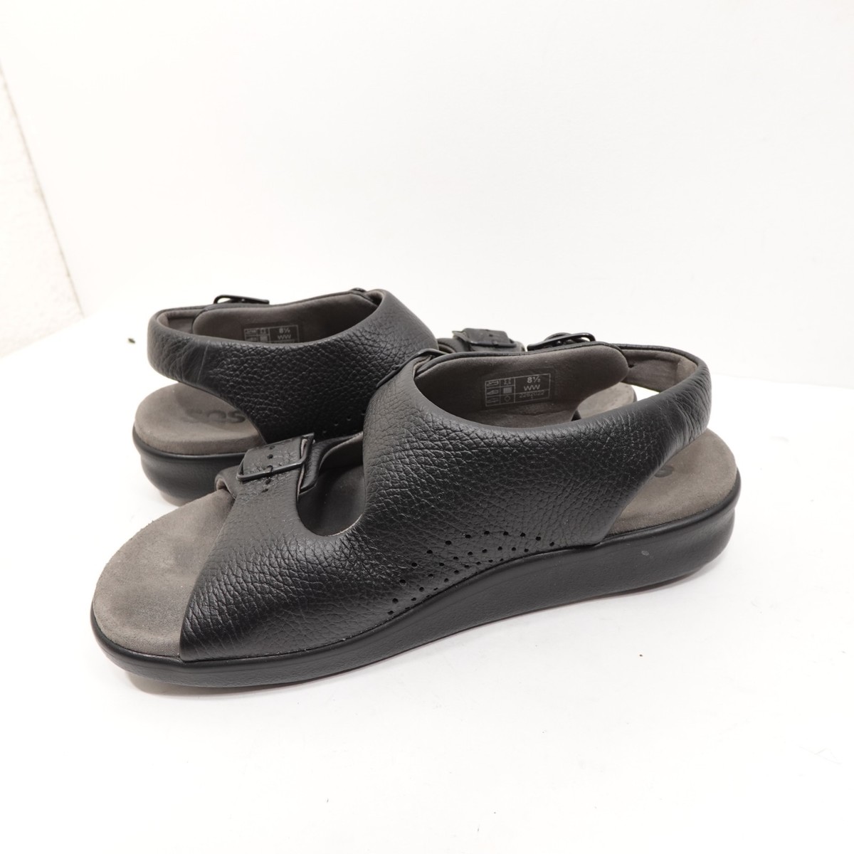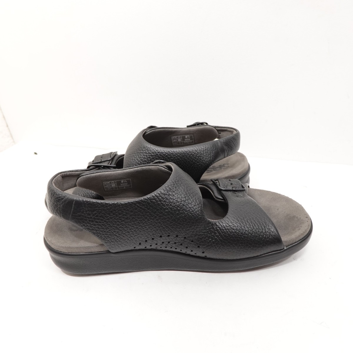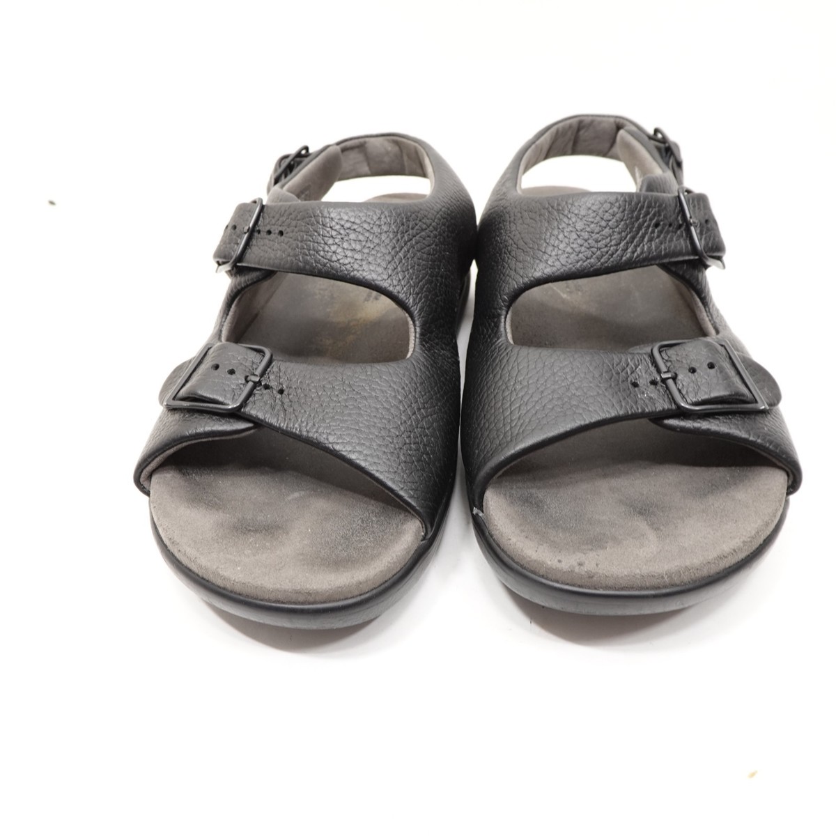 SAS Womens Relaxed Black Leather Double Strap Comfort Sandals Size 8.5 WW