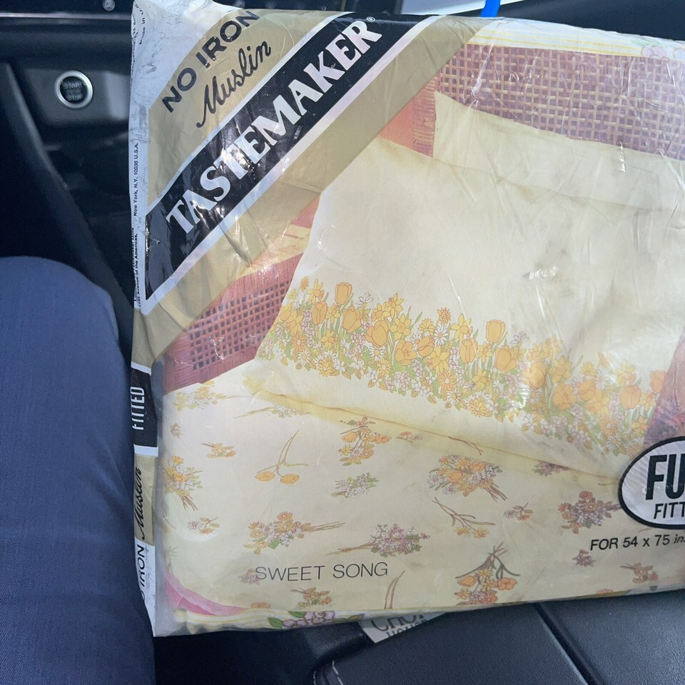 Vintage Tastemaker Tulips Flowers Full Fitted 54 X 75 inch Sheets ?sweet song? No Iron Muslin 1970?s many 80?s