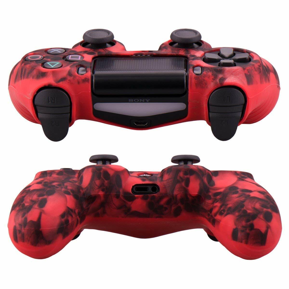For PS4 Controller Silicone Grip Red Black Skulls Non Slip Case Cover