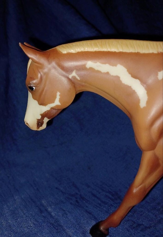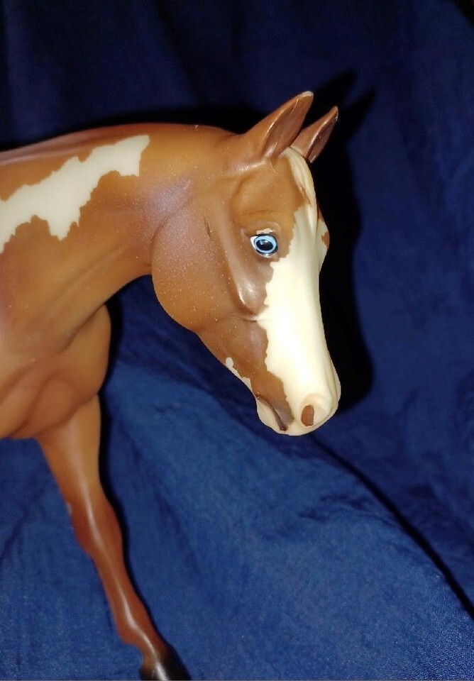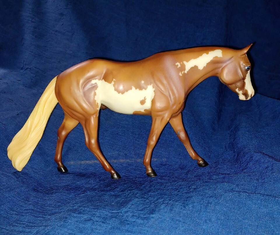 Note: this Breyer horse was modeled after the real Fleetstreet Max, a 1997 American Paint Horse Association sorrel gelding that one a total of 22 World Champioships in eight different events.