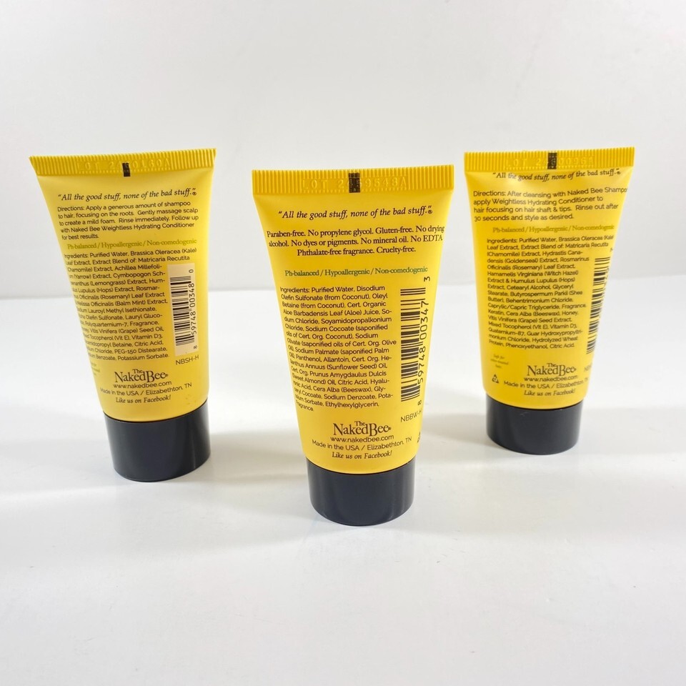 The Naked Bee Orange Blossom Honey Travel Size Set of 3 Shampoo, Conditioner, and Body Wash. 1.5 oz, 45 ml each.