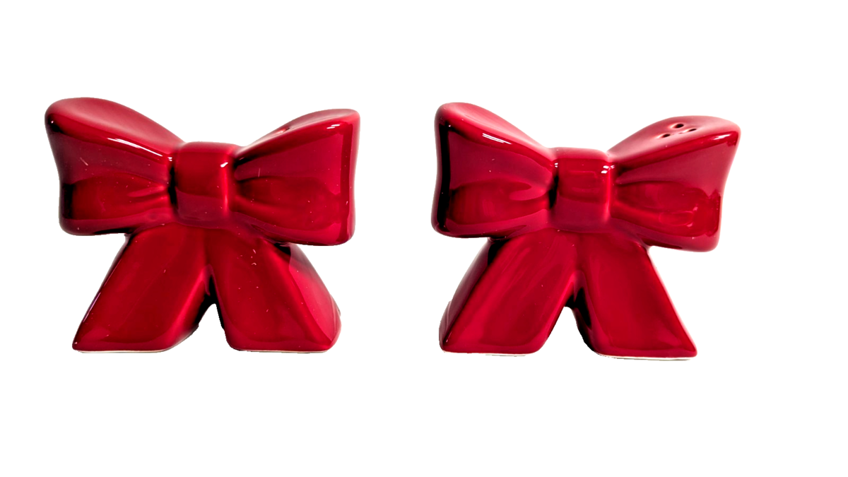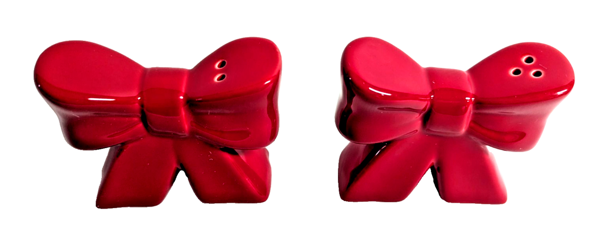 Beekman Home Red Ribbon Salt Pepper Shakers Ceramic Holiday Dining Gift New
