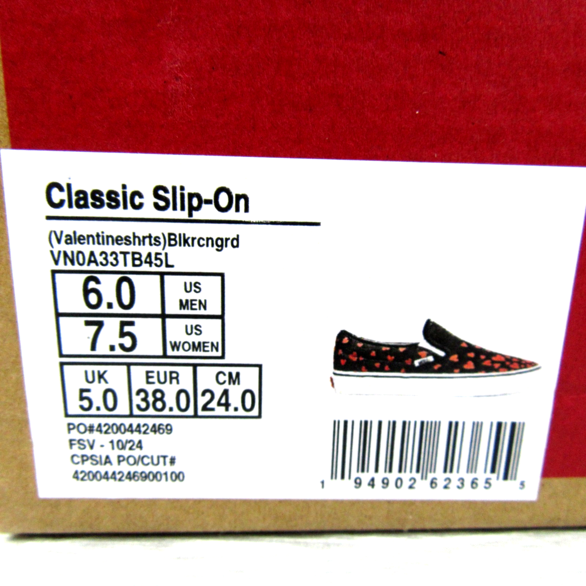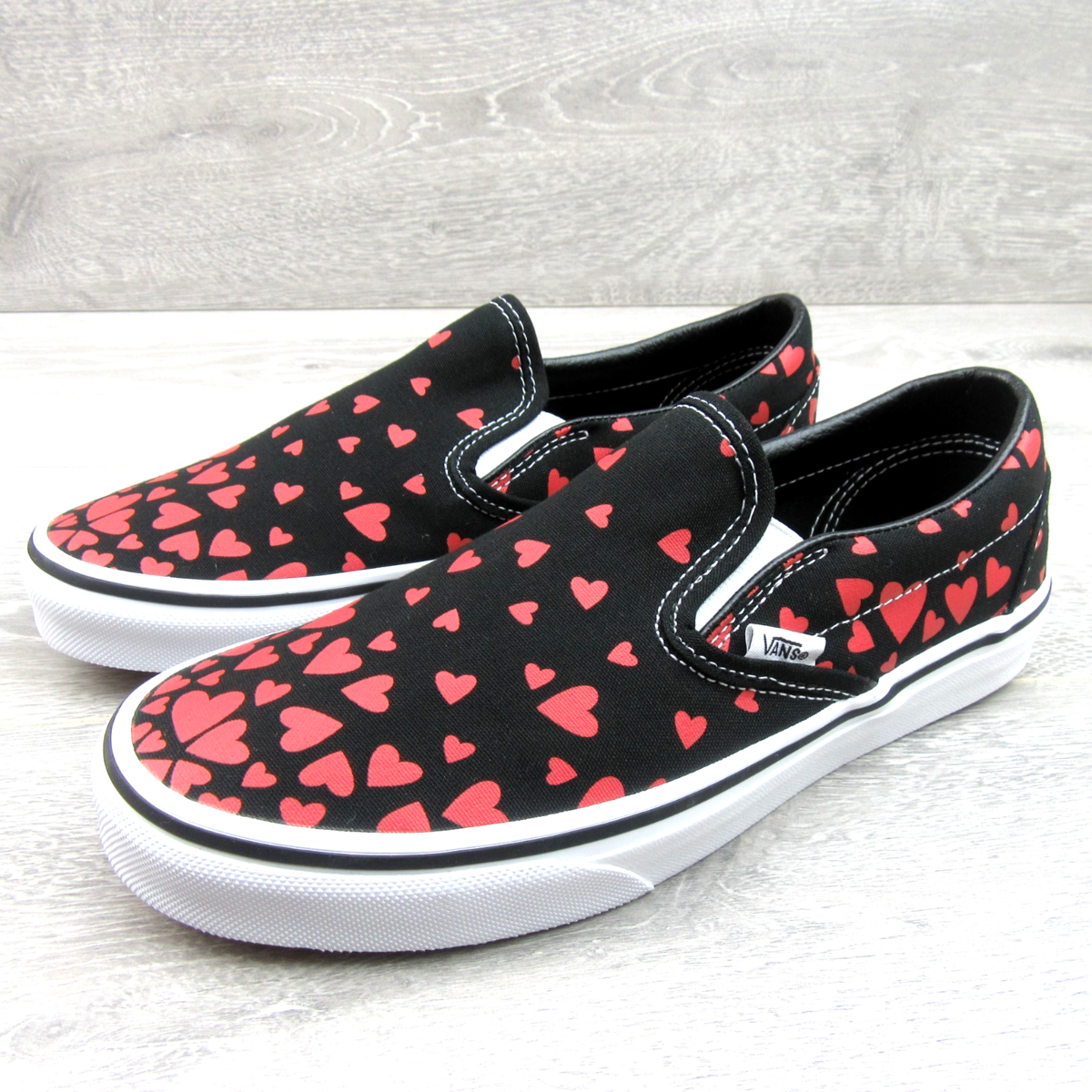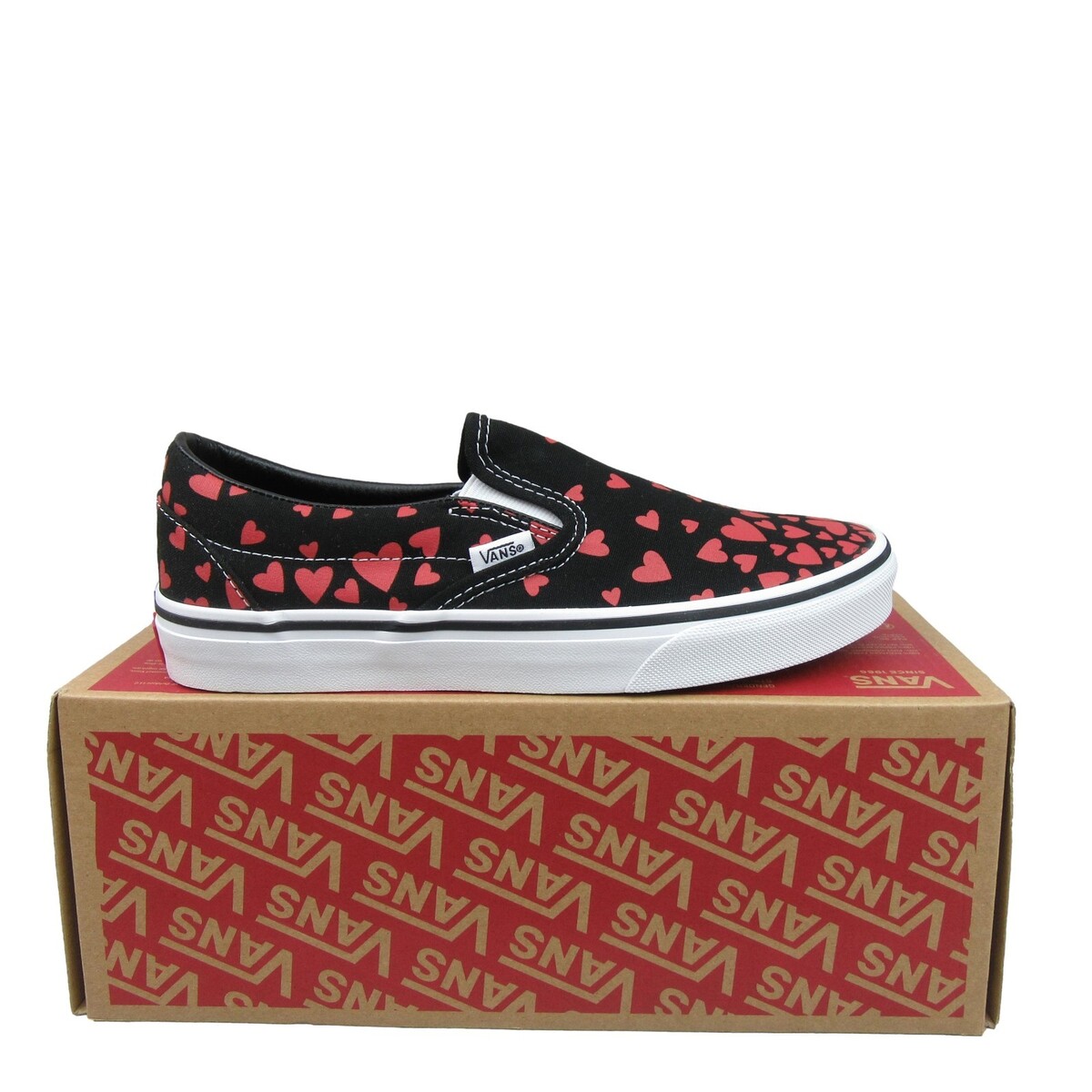 Vans Classic Slip On Hearts Shoes Womens Size 7.5 Black Red NEW VN0A33TB45L