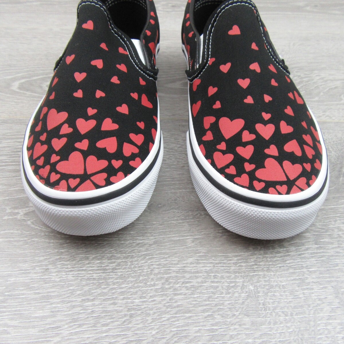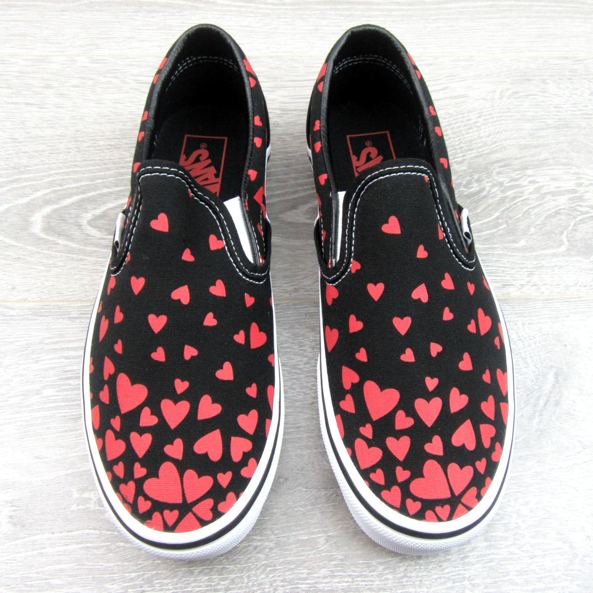 Vans Classic Slip On Hearts Shoes Womens Black Red