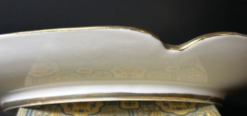 This beautiful tray platter from Noritake Nippon is a true antique. Hand-painted with intricate beadwork and moriage detailing, it is a stunning piece of Japanese artistry. The gold gilding adds a touch of elegance to the design, making it a perfect addition to any collection or display.