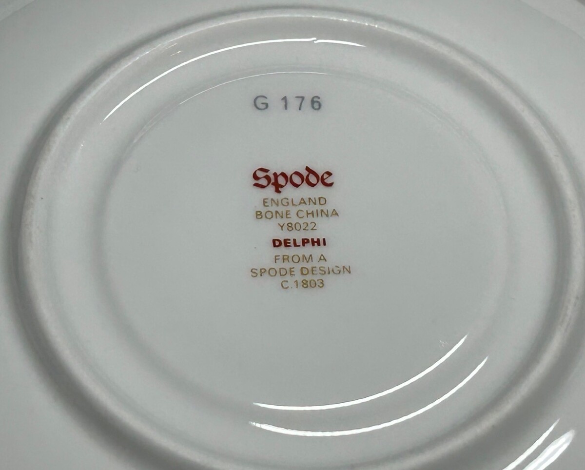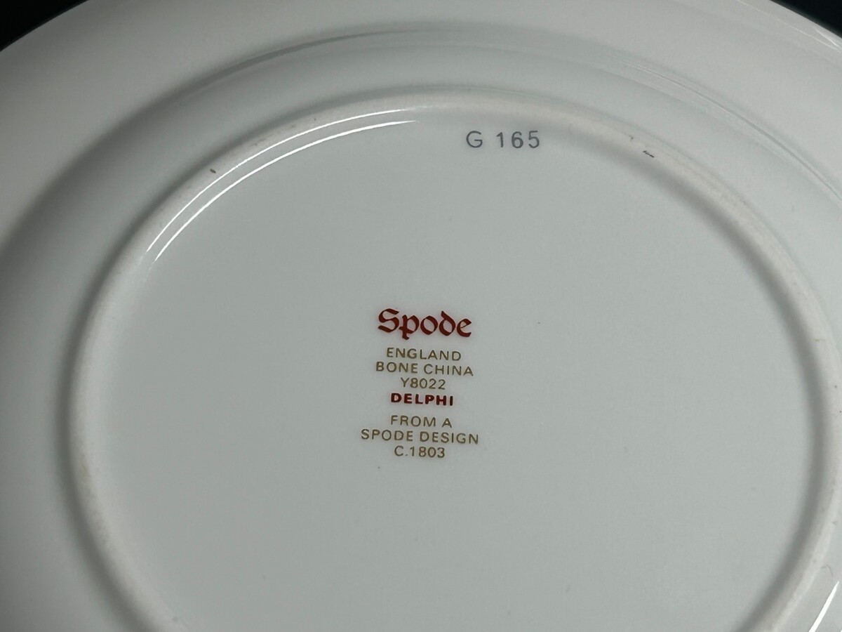 Spode Delphi SET of 5 Gold Leaves on Vine - Bread Plate & 2 Tea Sets Bone China