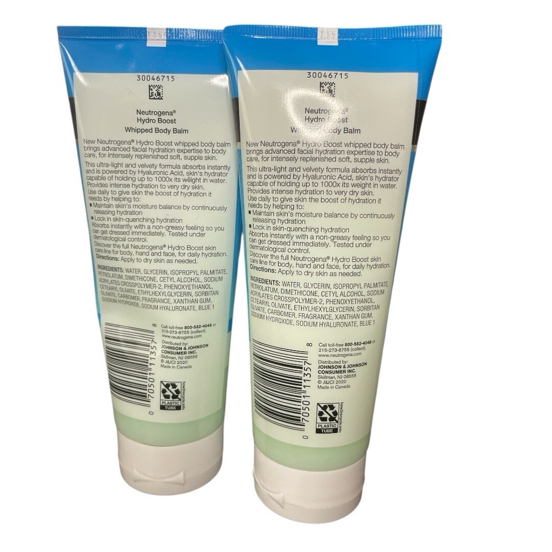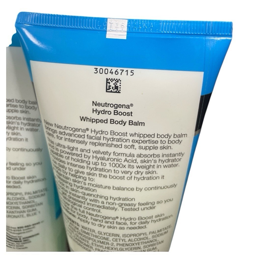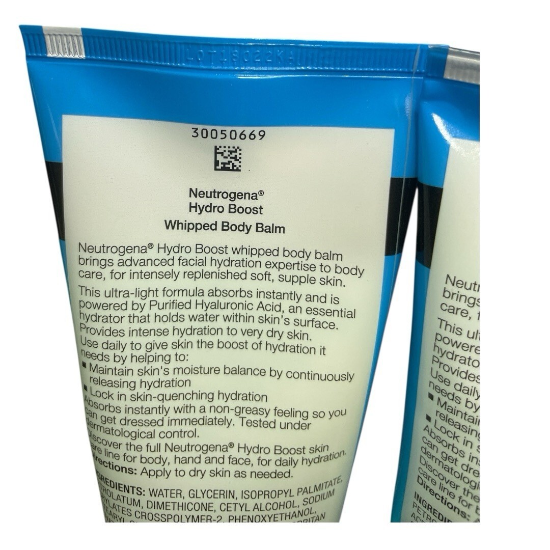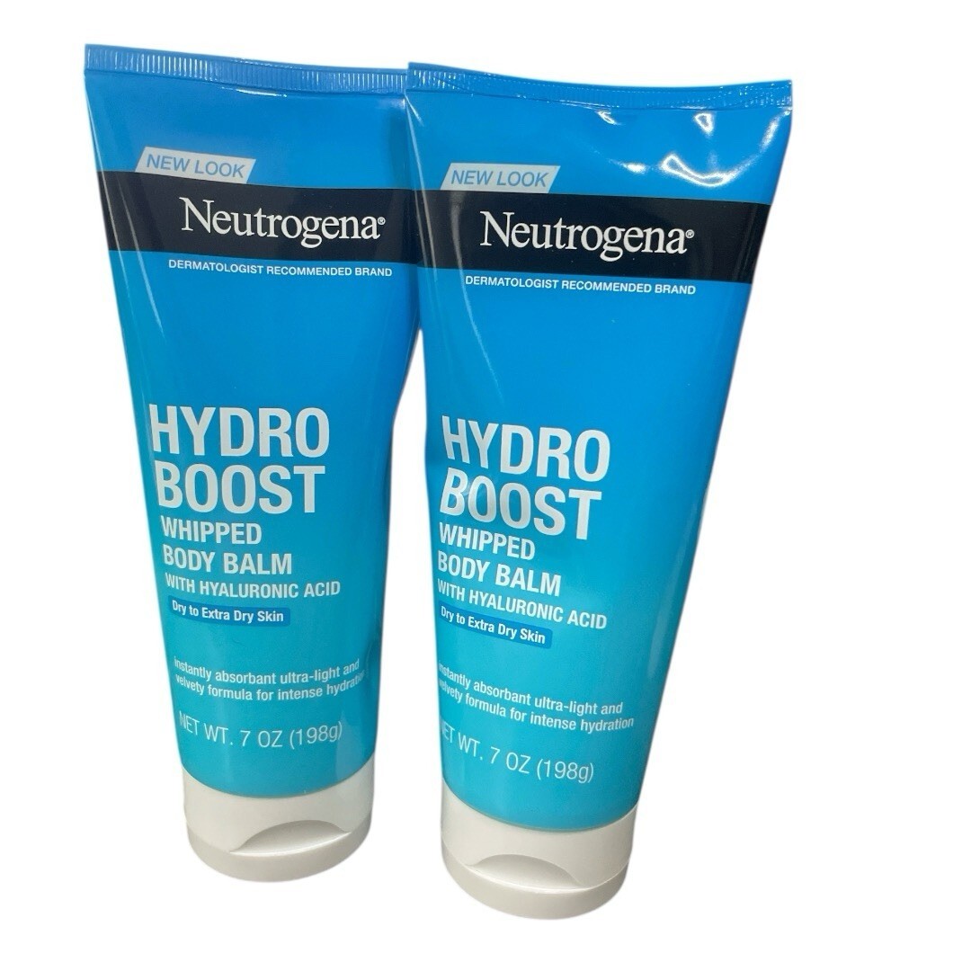 Neutrogena Hydro Boost Whipped Body Balm Hyaluronic Acid New Extra Dry. Item is new packaging was damaged front storage. There are two different packaging of the same item. You will get one or the other. Please see photos for all condition. This is a total of 2 tubes.