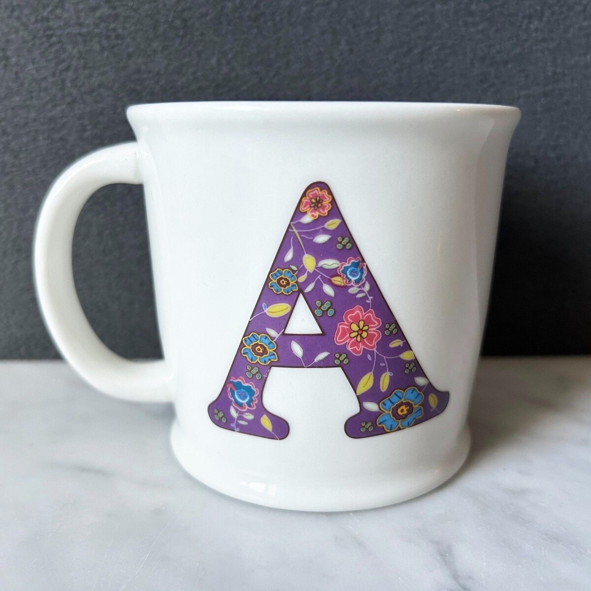 Natural Life Mug Letter A Monogram Love the Moment Coffee Cup Purple Floral