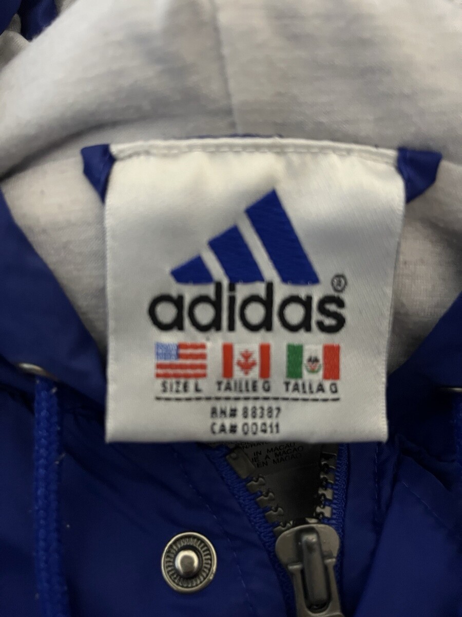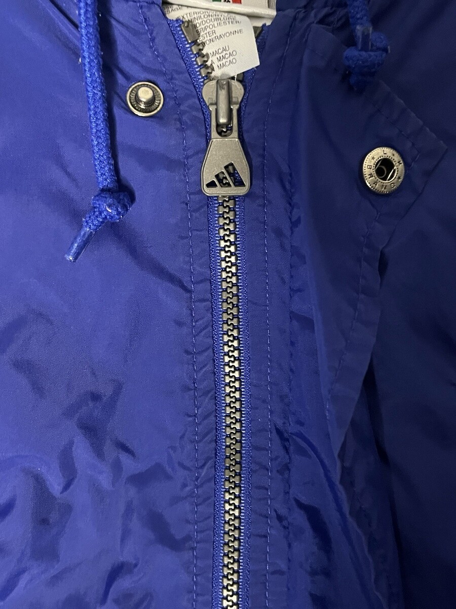 Adidas Lined Hooded Windbreaker Trackjacket Men’s SZ Large Blue Full Zip Button