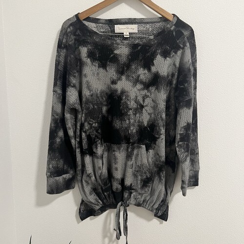 Women's French Laundry Top Green Large Waffleknit Layering Minimalist