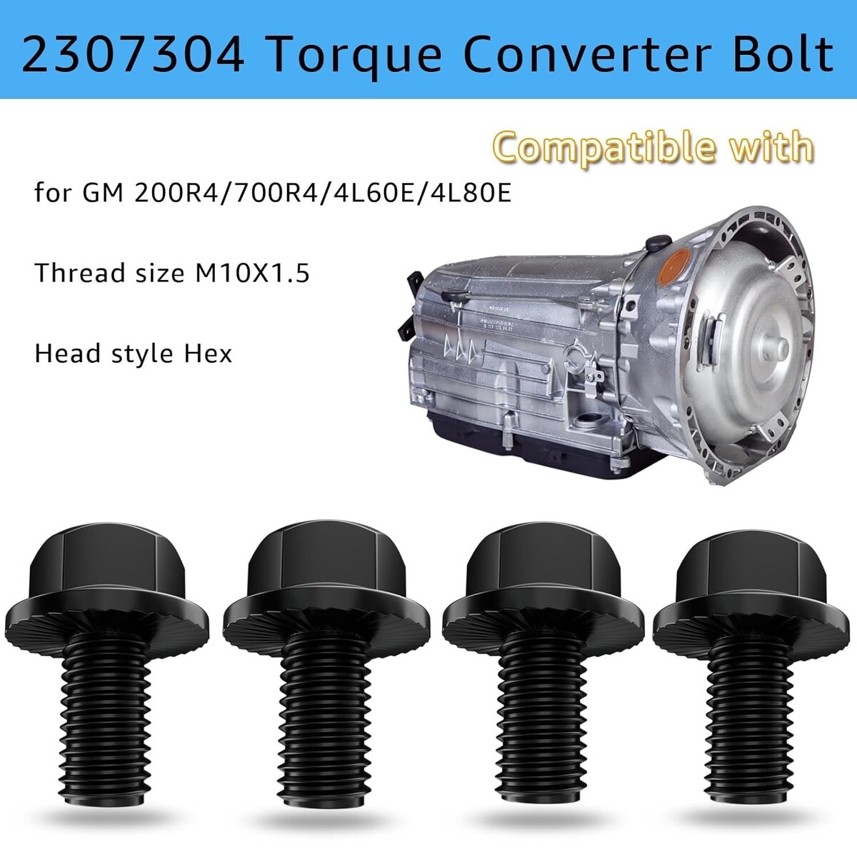LaWana 2307304 Torque Converter Bolt Kit directly replaces OEM parts for GM/Chevrolet 4L60E, 4L65E,4L80E, 700R4, 200-4R, 3L80 4L65E,4-speed automatic transmissions. Exact fit for M10-1.5x16 flange bolts ensures zero modification