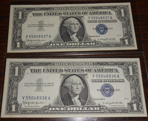 1957 A $1 Silver Certificate Consecutive 5 and similar items