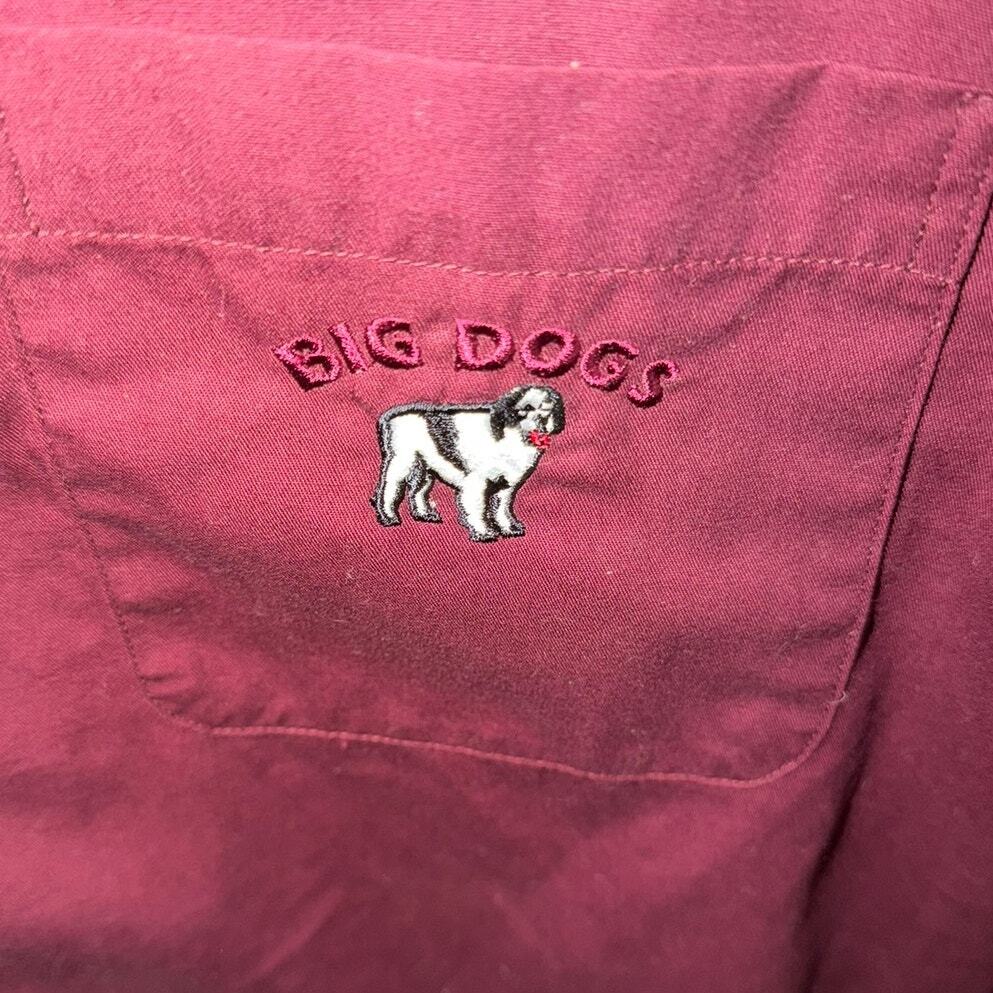 Men's Big Dogs Dress Shirt Burgundy Large Button Up Logo