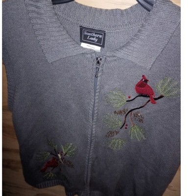 Southern Lady Cardinal Vest Large Women's Bird Nature Holiday Cottagecore