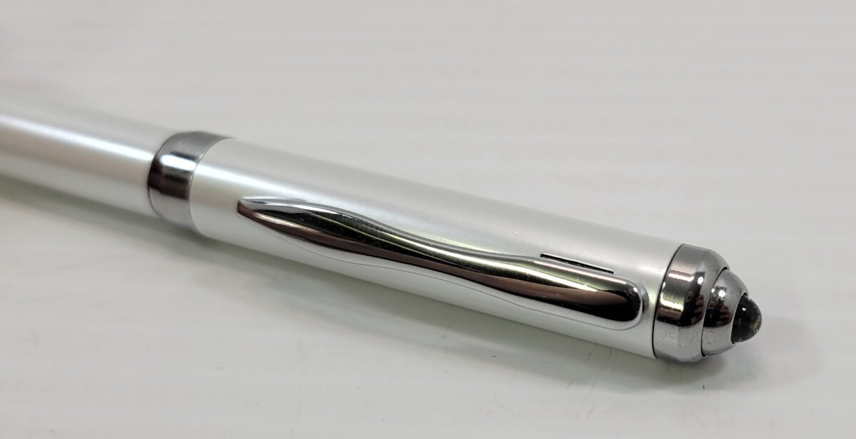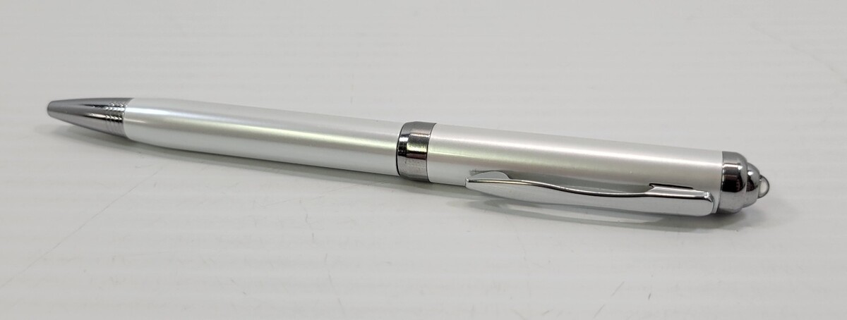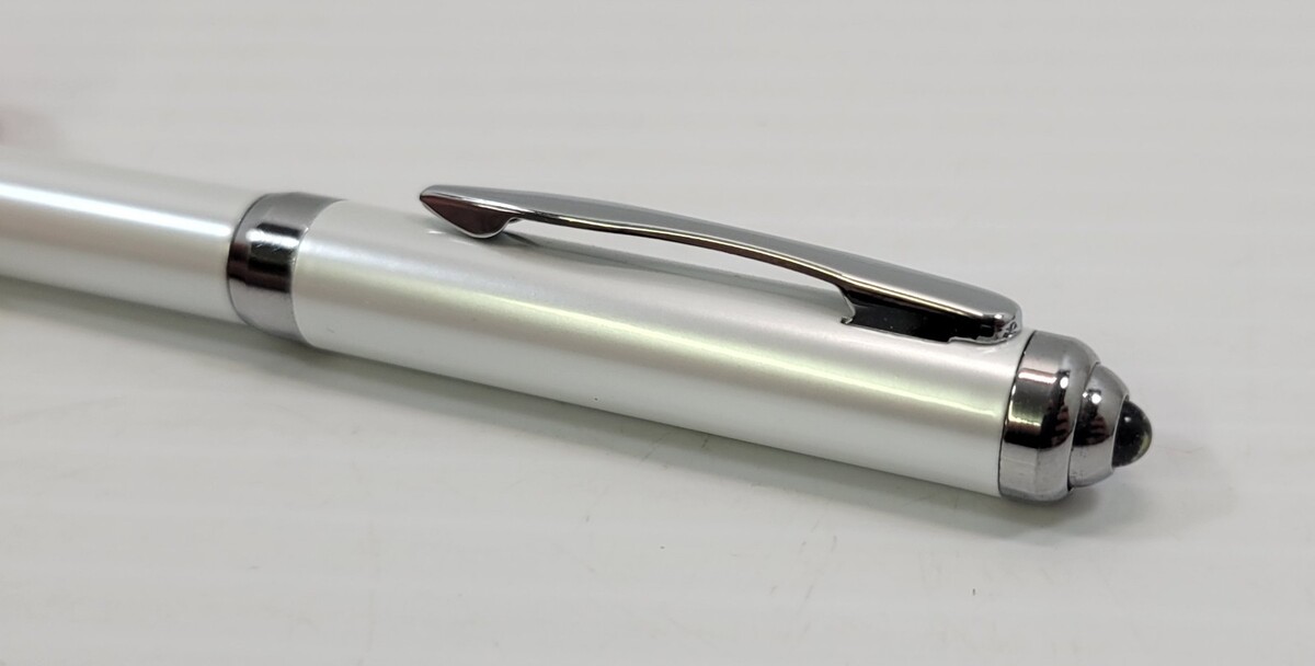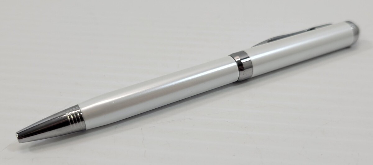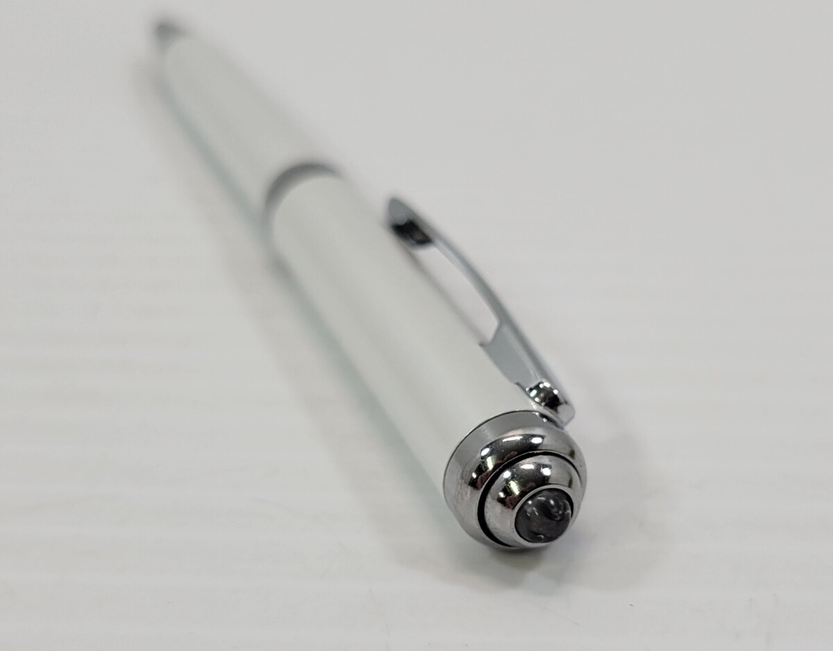 White Twist Ballpoint Pen with Push Button Flashlight Tip
