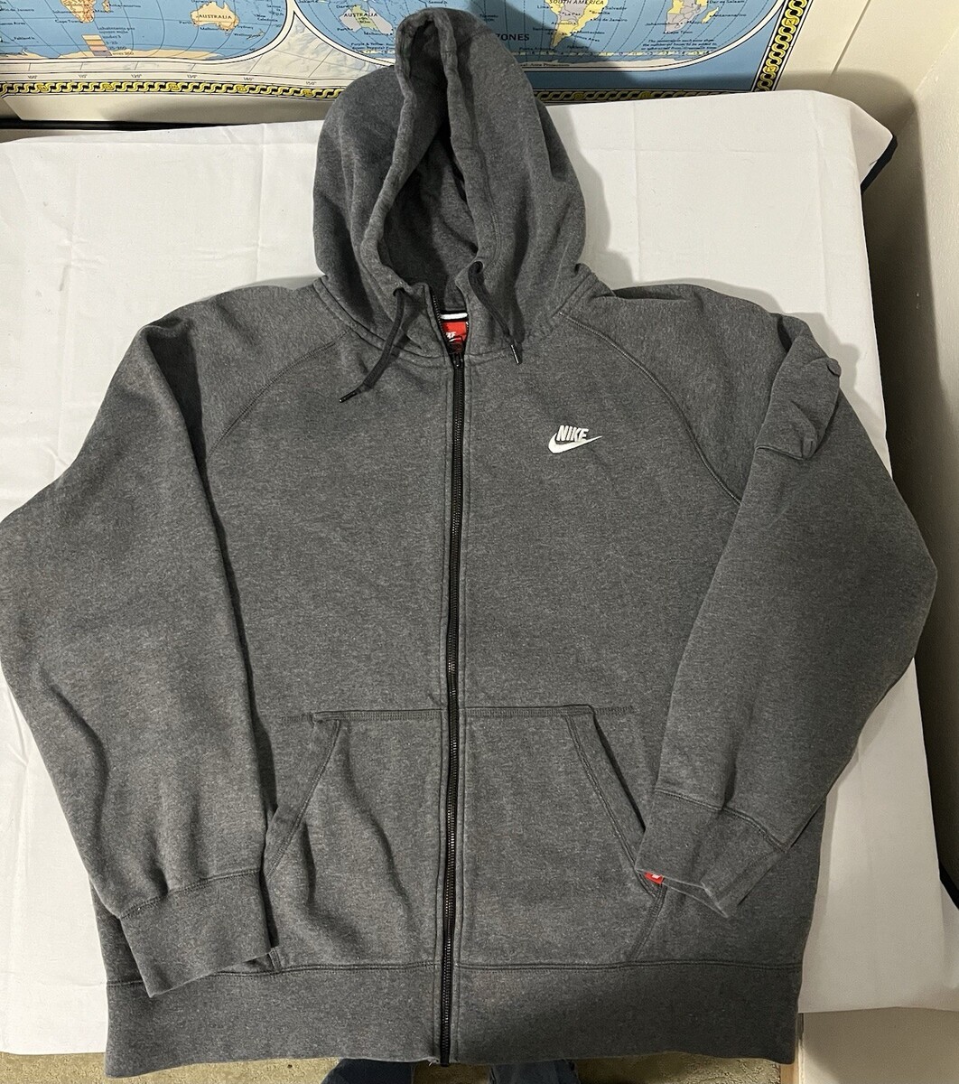 Nike Full Zip Hoodie Men's XXL Embroidered Logo Gray Sweatshirt Y2K Very Nice