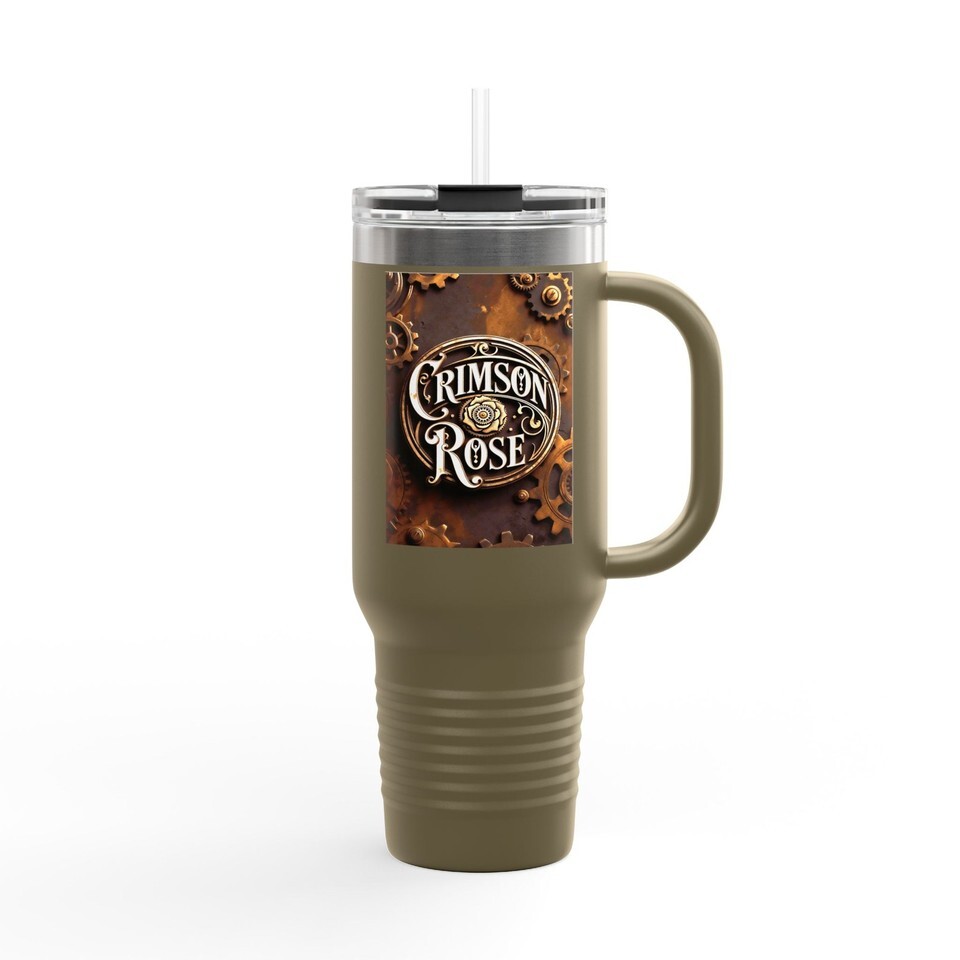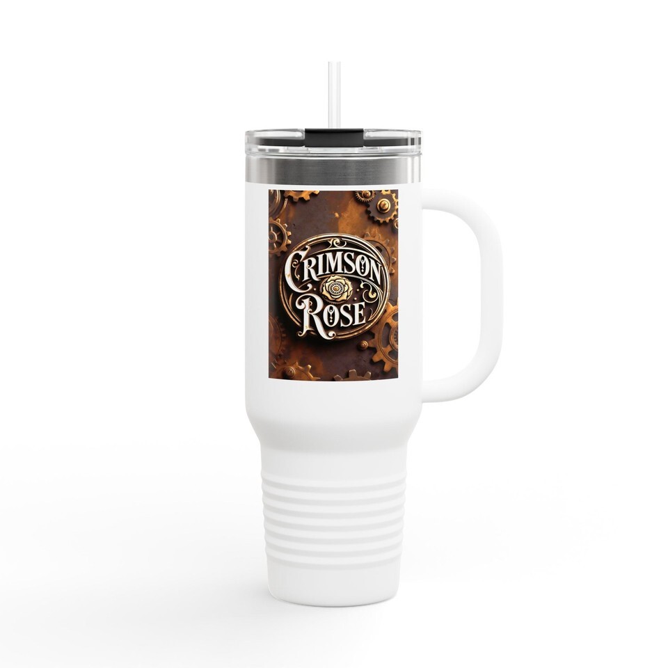 Crimson Rose Steampunk Gears Travel Mug | 40oz Insulated | Vintage Typography